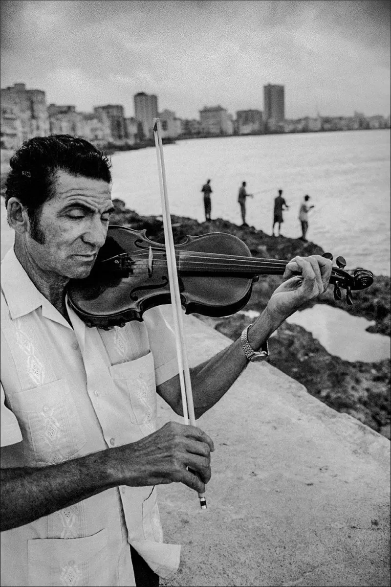 Fasziniert von Kuba begab sich der Franzose auf neun verschiedene Reisen auf die Insel, wobei jedes Mal Bilder entstanden, die eine einzigartige Perspektive bieten. Während sich viele zeitgenössische Fotografen von den leuchtenden Farben des Landes angezogen fühlen, entscheidet sich Roy für die Darstellung in seiner charakteristischen monochromen Farbpalette und verleiht seinen Fotografien ein Gefühl der Zeitlosigkeit, das an vergangene Tage erinnert. Diese atemberaubende Darstellung eines Geigers, der auf Havannas legendärem Malecón auftritt, veranschaulicht Roys Ansatz perfekt – eine fesselnde Hommage an Kubas unverwechselbares, beständiges Wesen.