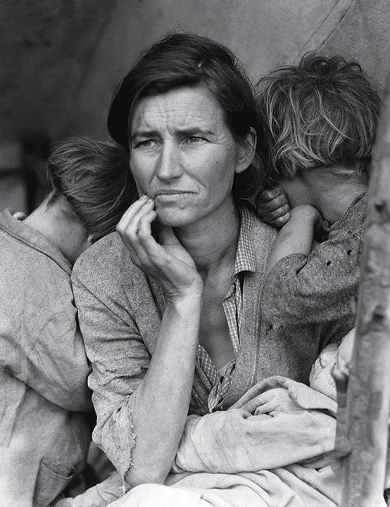 Migrant Mother è diventata l'immagine più iconica della Grande Depressione. Delle 160,000 immagini scattate da Dorothea Lange per la US Resettlement Administration, questa foto di Frances Owens Thompson con i suoi due figli ha dato un volto a una nazione sofferente.