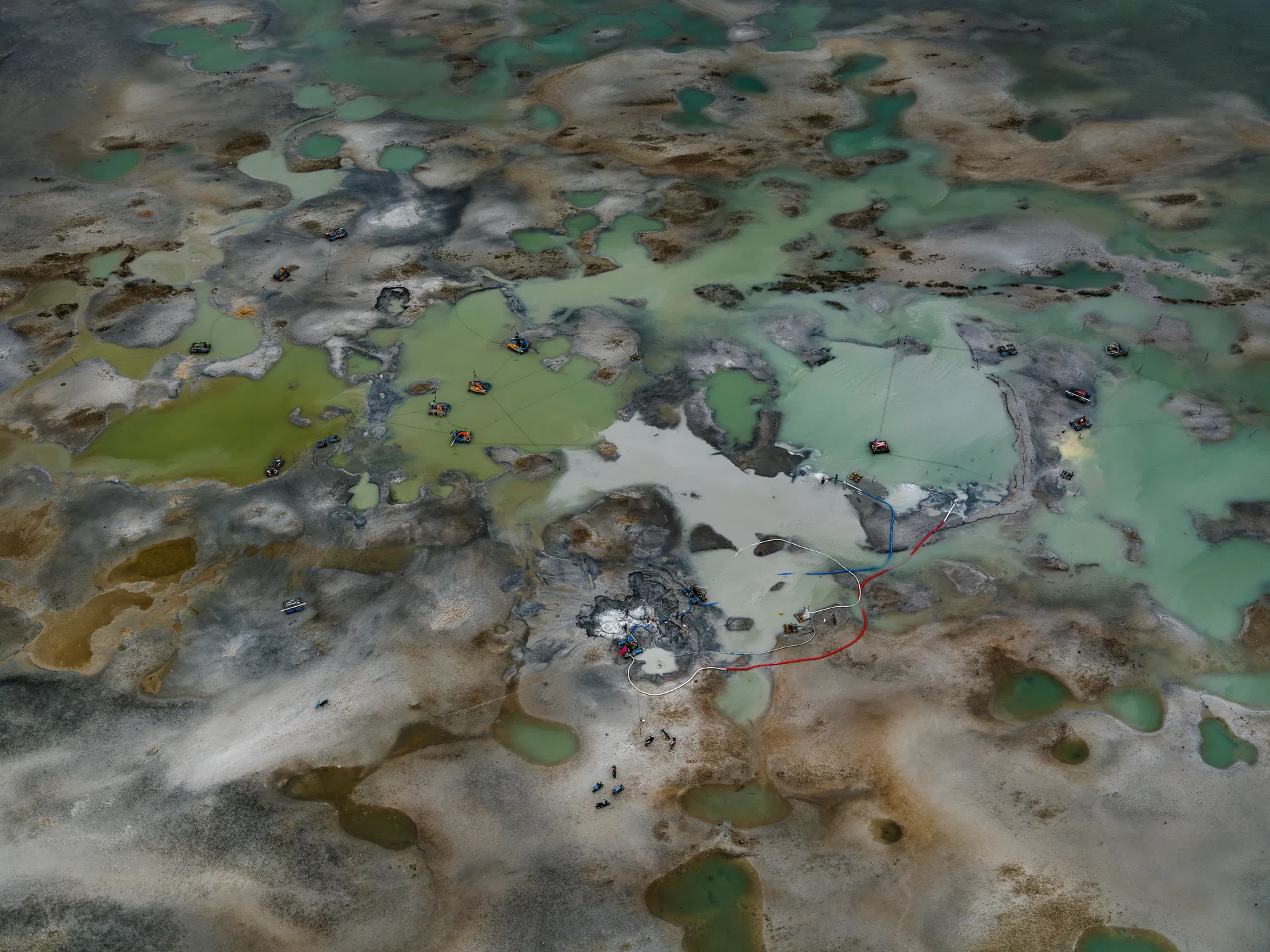 Ciò che emerge chiaramente dalle immagini di Hegen è che la transizione verde non è distribuita in modo uniforme. "Il Nord del mondo è il principale consumatore di minerali che vengono in gran parte estratti nel Sud del mondo", spiega. "Sono tornato di recente da Bangka, un'isola indonesiana che produce la maggior parte dello stagno del paese, un materiale essenziale utilizzato come saldatura per i circuiti stampati dei nostri smartphone e computer. Gran parte di questo stagno viene estratto illegalmente da minatori artigianali, sia sulla terraferma che, sempre più spesso, nell'oceano, con impatti devastanti sull'ambiente e sulla salute delle persone. Il vero pericolo è che stiamo ancora una volta sfruttando le risorse di paesi vulnerabili per sostenere il nostro benessere, mantenendo pulito il nostro giardino di casa".