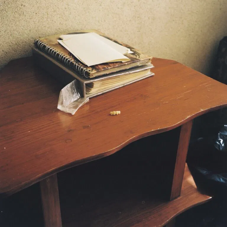 Her images depict everyday moments from her aunt’s life—deeply intimate, candid portraits, alongside objects and details from her restricted surroundings. The sensitivity in these images is evident, shaped by the close relationship between the two. There is a palpable tenderness, but also a quiet sadness when you understand the context. Arminda is always pictured alone, often appearing frail. Yet, moments of joy exist too—in one image, she smiles at the camera through a small mirror she holds.