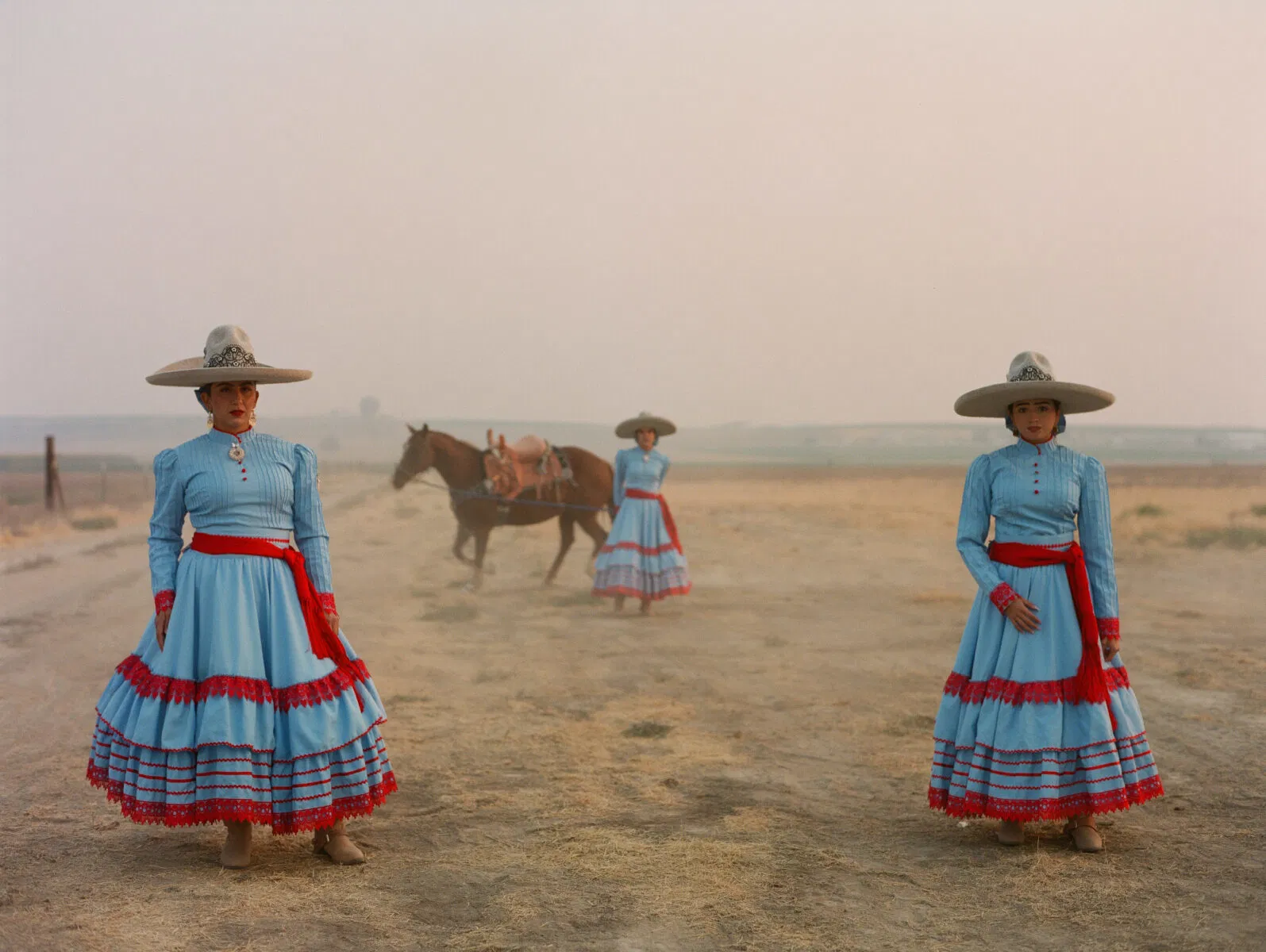 The still, confrontational portraits honor their strength and place in Charrería and the American landscape. The action shots, on the other hand, capture the intense physicality and danger of the sport—riding sidesaddle at high speed is incredibly demanding. Together, these approaches convey the complexity of the tradition and the women’s dedication.