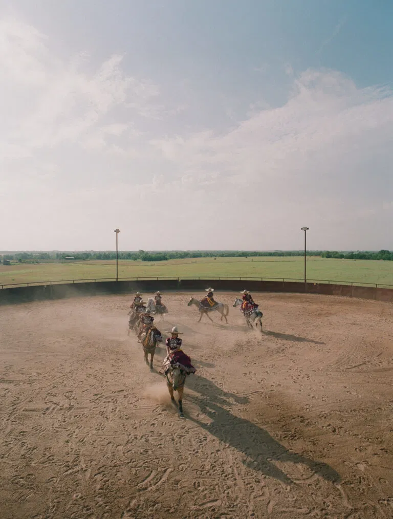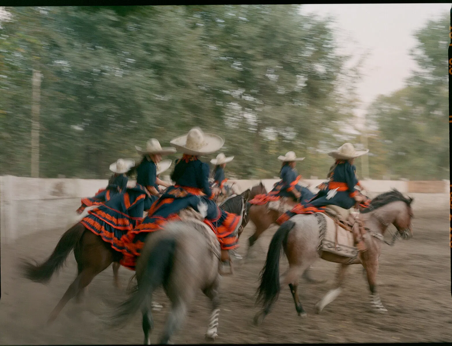 Rooted in Charrería—a practice celebrating horsemanship and ranching that originated in 16th-century Mexico and was later formalized post-Revolution as a symbol of lo mexicano—Escaramuza emerged in the 1950s as a groundbreaking space for women in a historically male-dominated tradition.