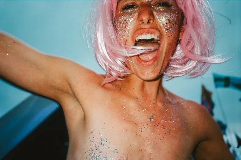 Shot in color and monochrome, and encompassing both portraiture and unposed ‘street’ style shots, the evocative images capture the full spectrum of the music festival experience (away from the creeping corporatization that is becoming increasingly prevalent) – moments of joy, grit, romance, love, and ecstasy – with striking candor, while the visceral, ‘up-close’ style that predominates, obscures the line between photographer and subject, and endows the viewer with the feeling of being present.