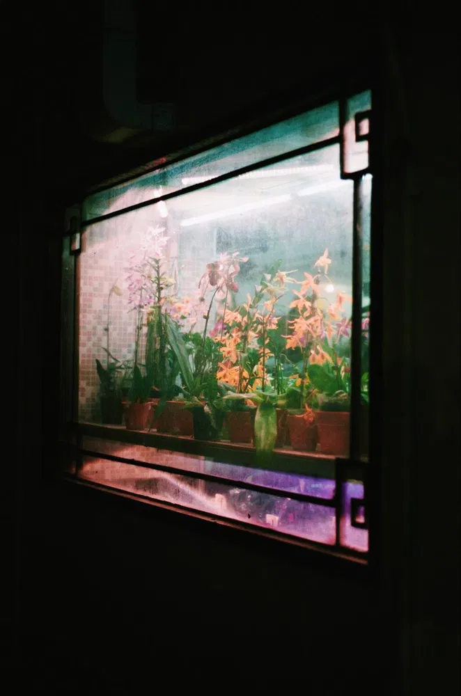 The bauhinia flower, a long-standing symbol of Hong Kong seen on the city flag, is a familiar sight across the city, adorning parks, gardens, and shop windows. In this captivating image by renowned travel photographer Pia Riverola, the bauhinia’s soft pink and orange hues—muted by condensation-covered glass—contrast starkly against the night outside, creating a nostalgic, almost cinematic atmosphere, characteristic of Riverola’s work and evocative of Hong Kong’s golden age.