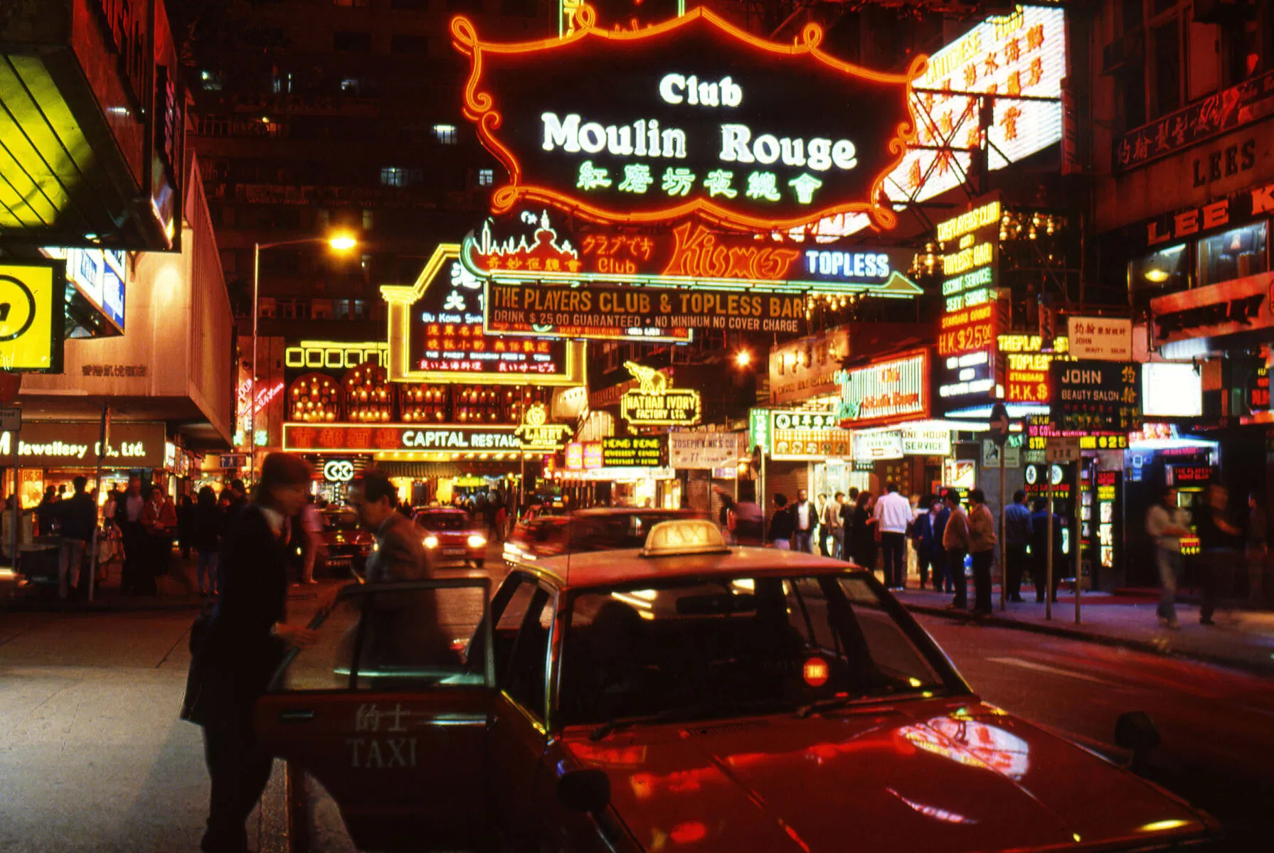 Canadian photographer Greg Girard is renowned for capturing the shifting face of some of Asia’s major cities in the late 20th century, his neon-lit images documenting a world in flux. He first visited Hong Kong in 1974 and moved there in 1982, staying for over a decade after spending four years in Tokyo. He arrived at a pivotal moment—Hong Kong’s so-called Golden Age—as it solidified its status as a global financial hub. The Stock Exchange was incorporated in 1980, wealth surged, and a new culture of cosmopolitan chic emerged.