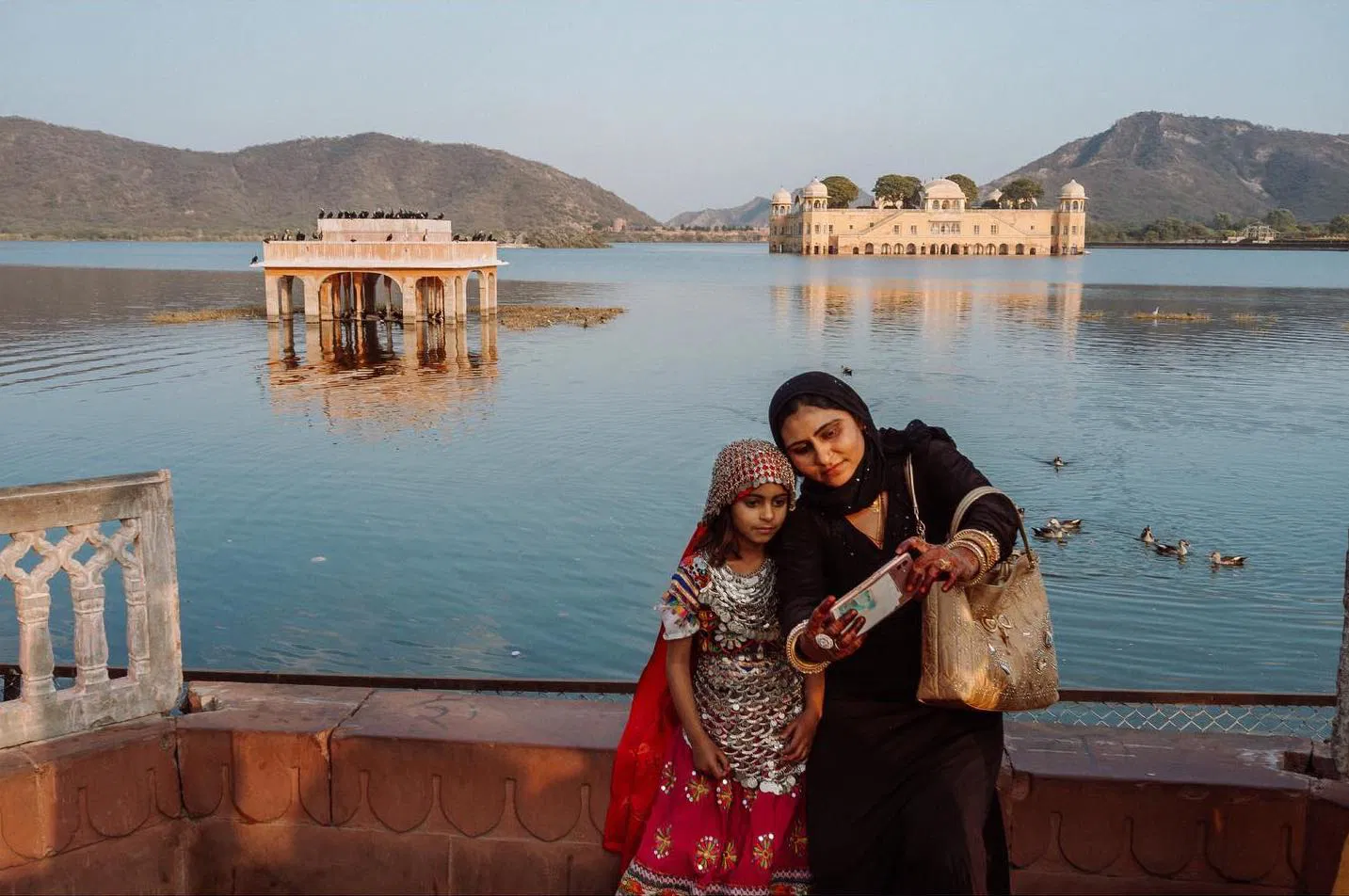 Few contemporary figures embody the spirit of adventure and travel photography quite like Jody MacDonald. With rare intrepidity and considerable skill, she has dedicated her career to travelling the globe, capturing imagery that conveys its diverse beauty and humanity. Her depiction of a mother taking a selfie with her young daughter in Jaipur is typical of her work—a sensitive image that captures a tender moment of modern life juxtaposed with the historic buildings rising from the lake in the background.