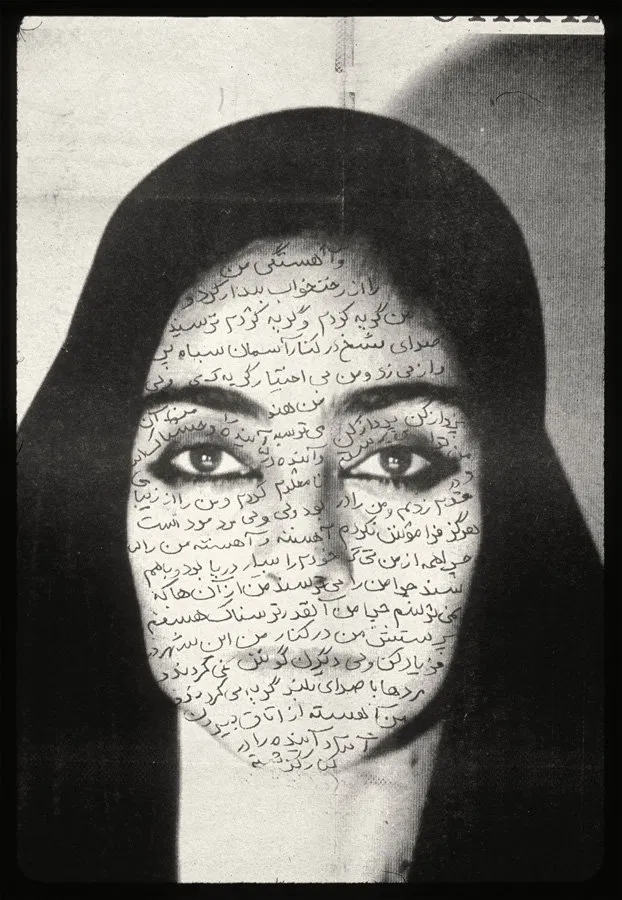Neshat’s work explores the relationship between women and the religious and cultural value systems of Islam. Her overtly political photos address Islamic law’s effect on Iranian women’s daily life. In her series The Women of Allah, she presents herself in a series of self-portraits wearing the chador veil. In the photographs, her face, feet, and hands (the only parts of the body allowed to be shown by Islamic law) are covered in Iranian poetry by Forough Farrokhzad and Tahereh Saffarzadeh. By mixing poetry and writing Neshat makes the statement that these women are more than icons of oppression, they are complex individuals with desires and ambitions.