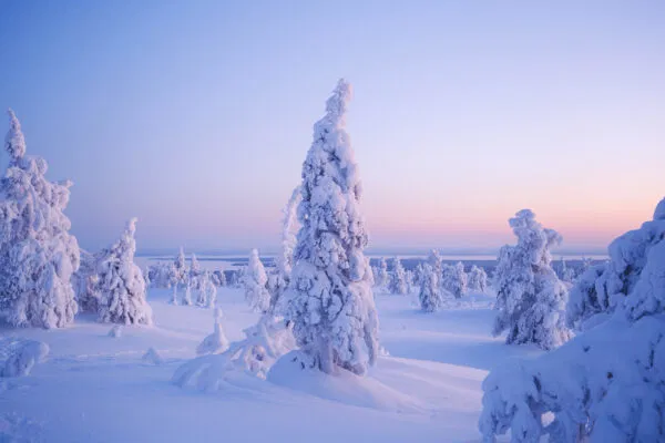 Snow-covered trees stand like frozen sentinels across the wintry terrain of northern Finland; tufts of golden grass punctuate the dry Andean plain as a lone volcanic peak rises beneath sweeping, otherworldly clouds; scarlet poppies ripple across rolling Tuscan hills as cypress-lined ridges glow in the warm, slanting light; and traffic trails sweep like glowing ribbons across Bixby Bridge, its soaring arch watching over the rugged California coast as dawn settles softly over the Pacific.