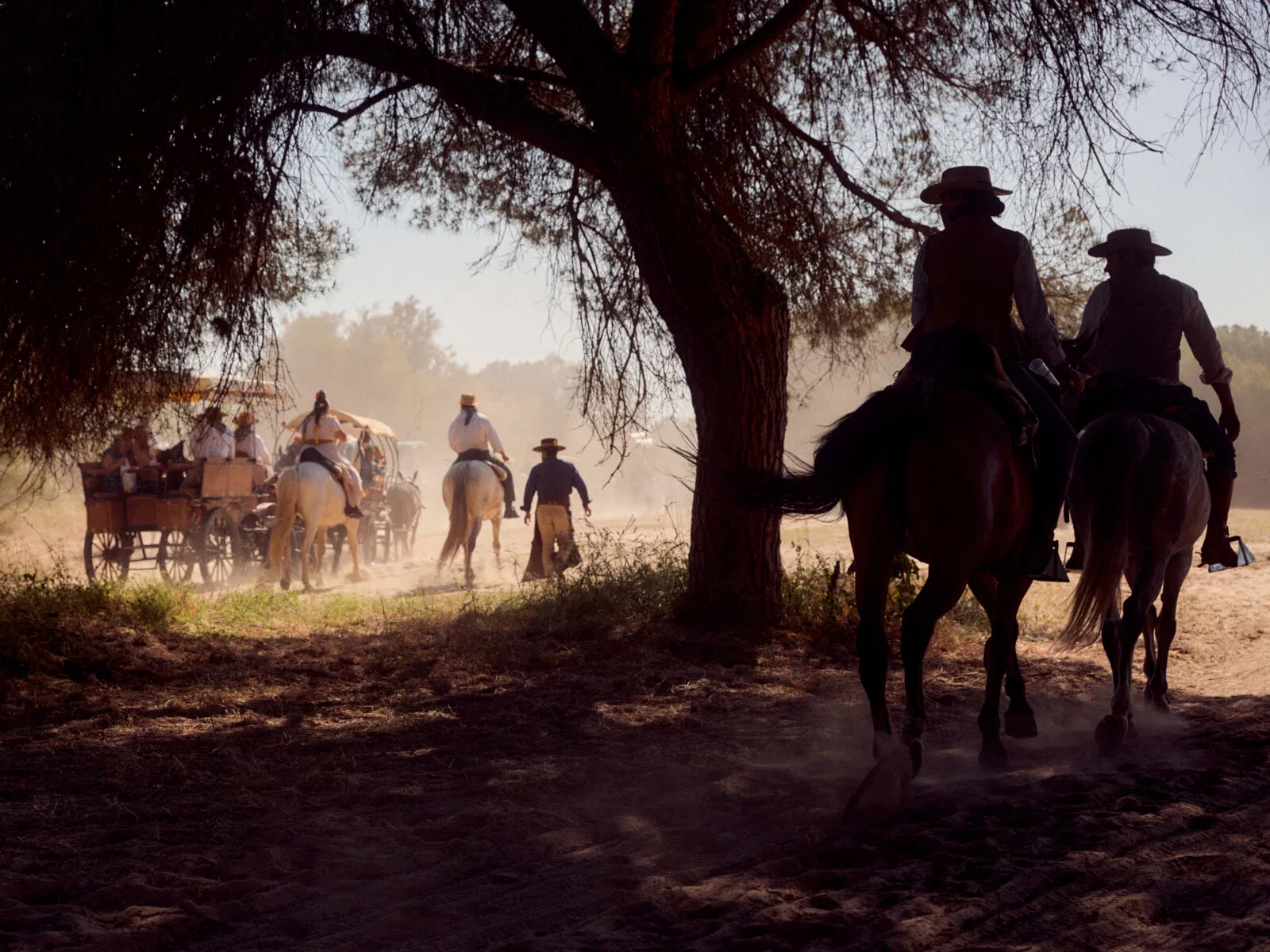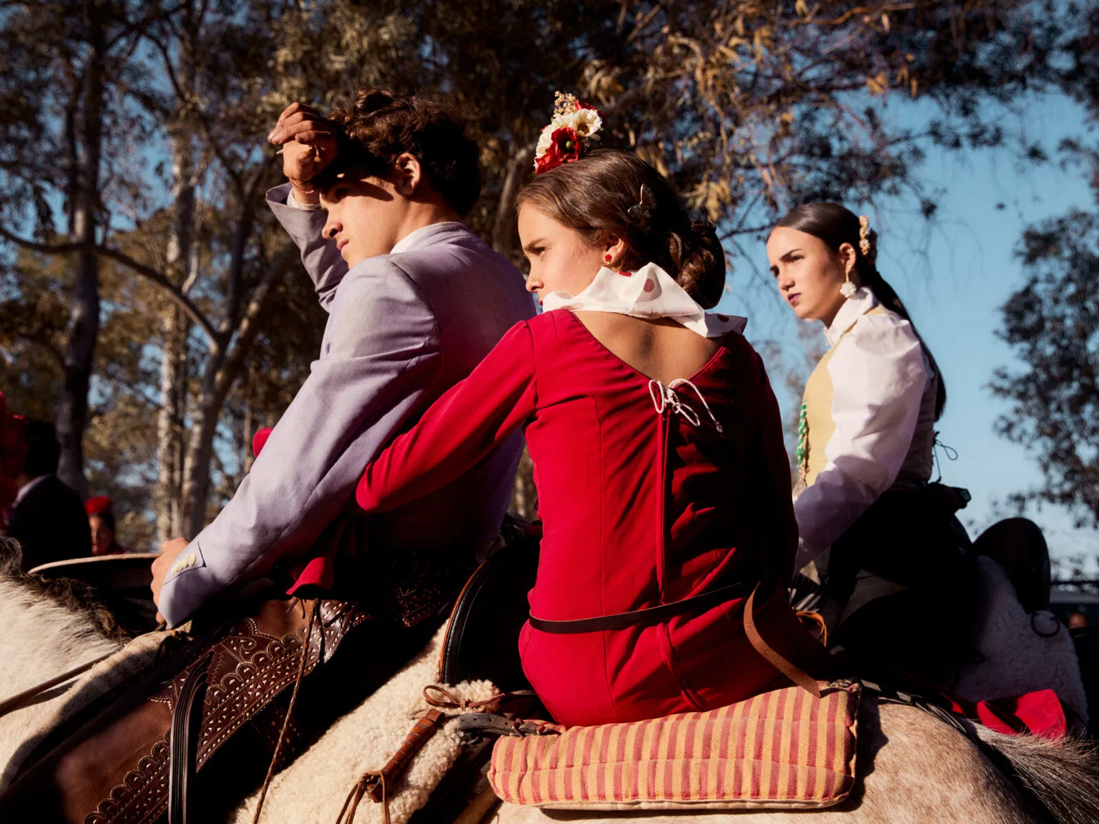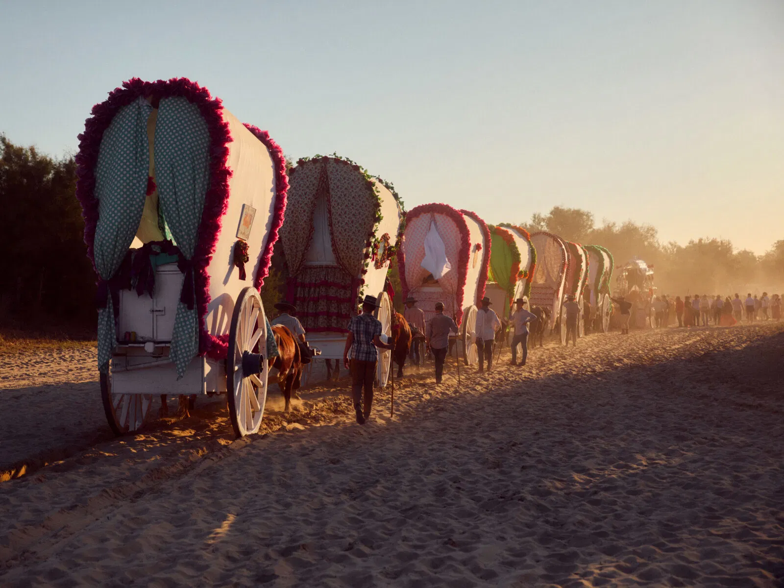 L.Foggitt: I flew out with my filmmaker friend Charlie, excited but also uncertain of what to expect. We spent a couple of nights with the family in a nearby village before setting off on the pilgrimage in a horse-drawn carriage—speeding along sandy tracks with hundreds of other pilgrims, stopping for drinks and tapas under the trees. While our journey lasted only a day, others traveled for weeks.