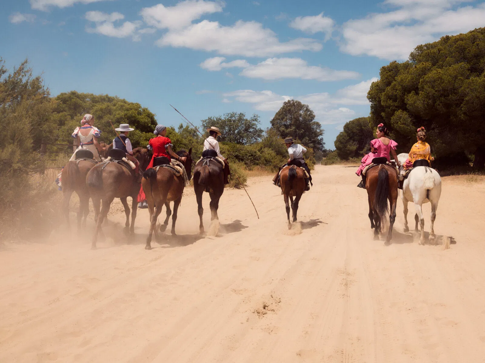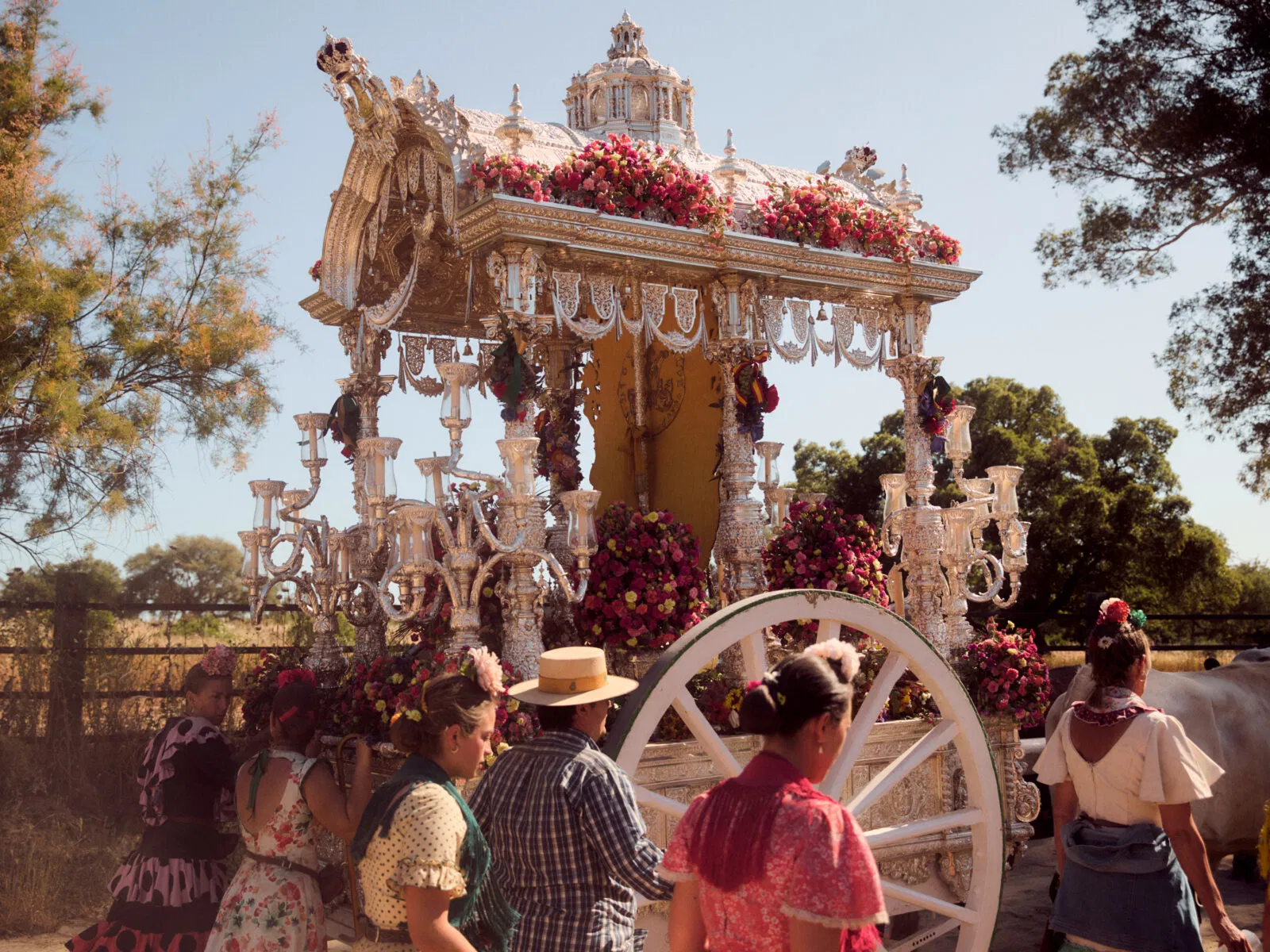 The Romeria de El Rocío is one of Spain’s oldest and largest ferias. Its roots date back to the 13th century when, according to legend, a hunter discovered a statue of the Virgin Mary inside a hollowed-out tree. Today, pilgrims travel from all over Andalusia and beyond, often journeying as their ancestors did—some in ornately decorated ox-drawn wagons, others on horseback for days, while many make the journey on foot through winding country tracks and sandy plains.