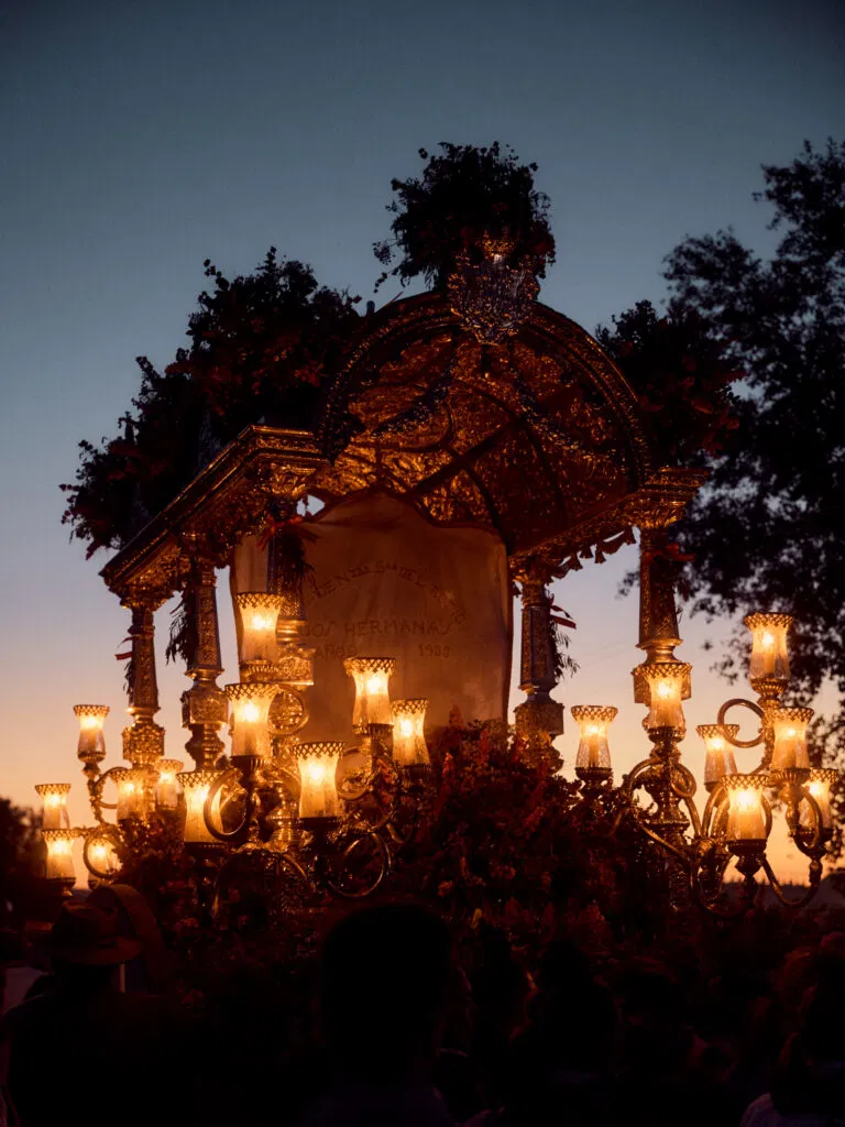 In the early hours of Pentecost Monday, the celebration reaches its climax as the statue of the El Rocío Virgin is carried from her church on the shoulders of the crowd. She is lifted above the sea of people, carried long into the daylight hours as pilgrims weep with devotion.
