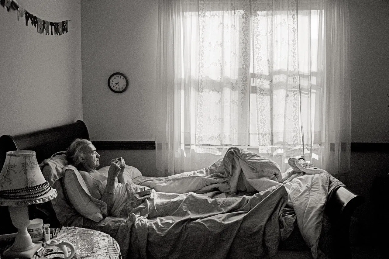 Above image: Madje Steber enjoys breakfast in bed, a morning ritual that went toward spoiling her as part of her care at Midtown Manor Assisted Living Facility. As someone who worked up until the age of 72, daughter Maggie wanted her to be able to sleep late, eat breakfast whenever she wanted, and in general, be spoiled rotten, in the final years of her life as she suffered from the decline of dementia. (From the series: ‘Rite of Passage’)
