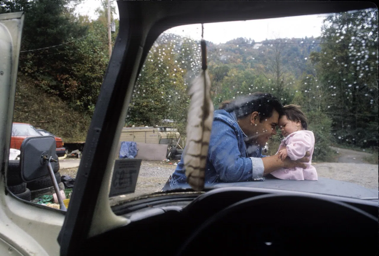 Above image: Cherokee Mike Grant plays with his niece, Raven, before heading out to South Carolina in search of work. During the summer months, work is ample on the Cherokee Reservation at the foot of the Great Smoky Mountains, due to tourism, but things dry up in the winter and many Cherokee men have to leave the reservation in search of work elsewhere until the spring returns.