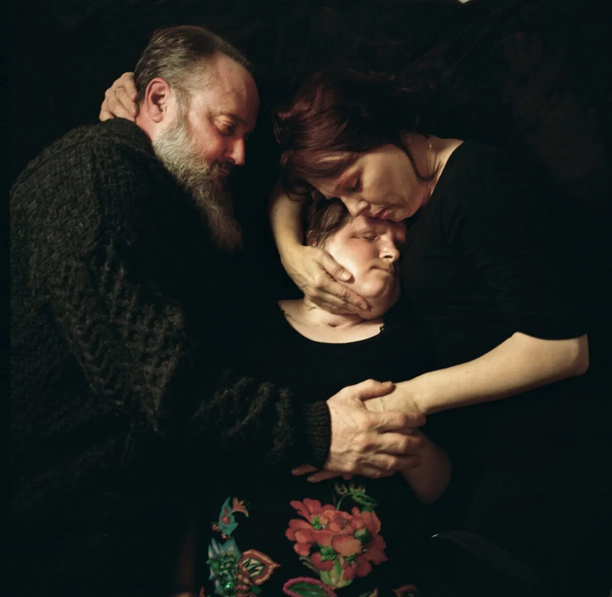 Above image: Robb and Alesia Stubblefield hold their daughter, Katie, at their apartment in the Ronald McDonald House in Cleveland, Ohio, months after Katie received a face transplant at the Cleveland Clinic. Her parents have been warriors throughout the ordeal of Katie having lost her face during a gun accident a few years ago. They quit their jobs to take full-time care of their daughter through multiple surgeries including a full face transplant and continuing surgeries to refine the donor face. The face was donated by Sandra Bennington when her granddaughter, Adrea Schneider, fell into a coma from a drug overdose. (From the series: ‘Story of a Face’)