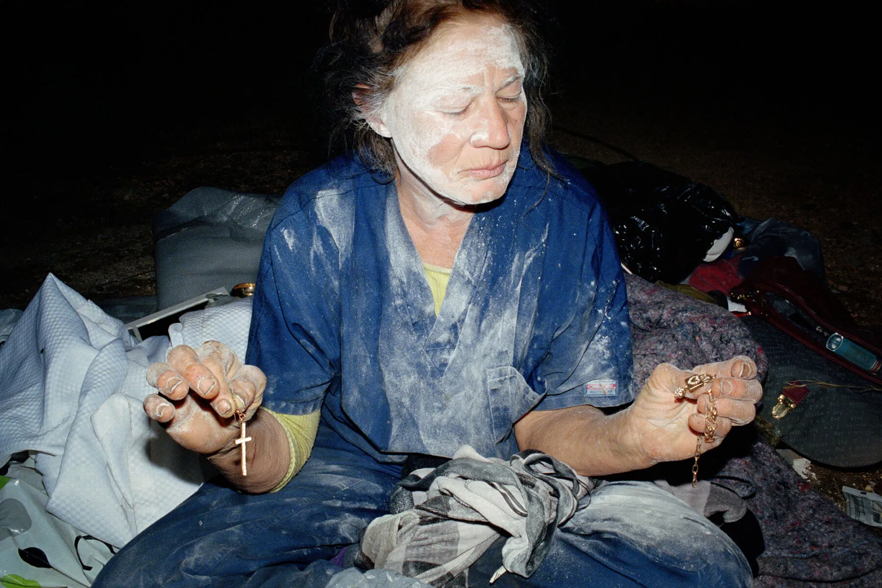 Portrait of a woman holding a small crucifix by Mike Brodie