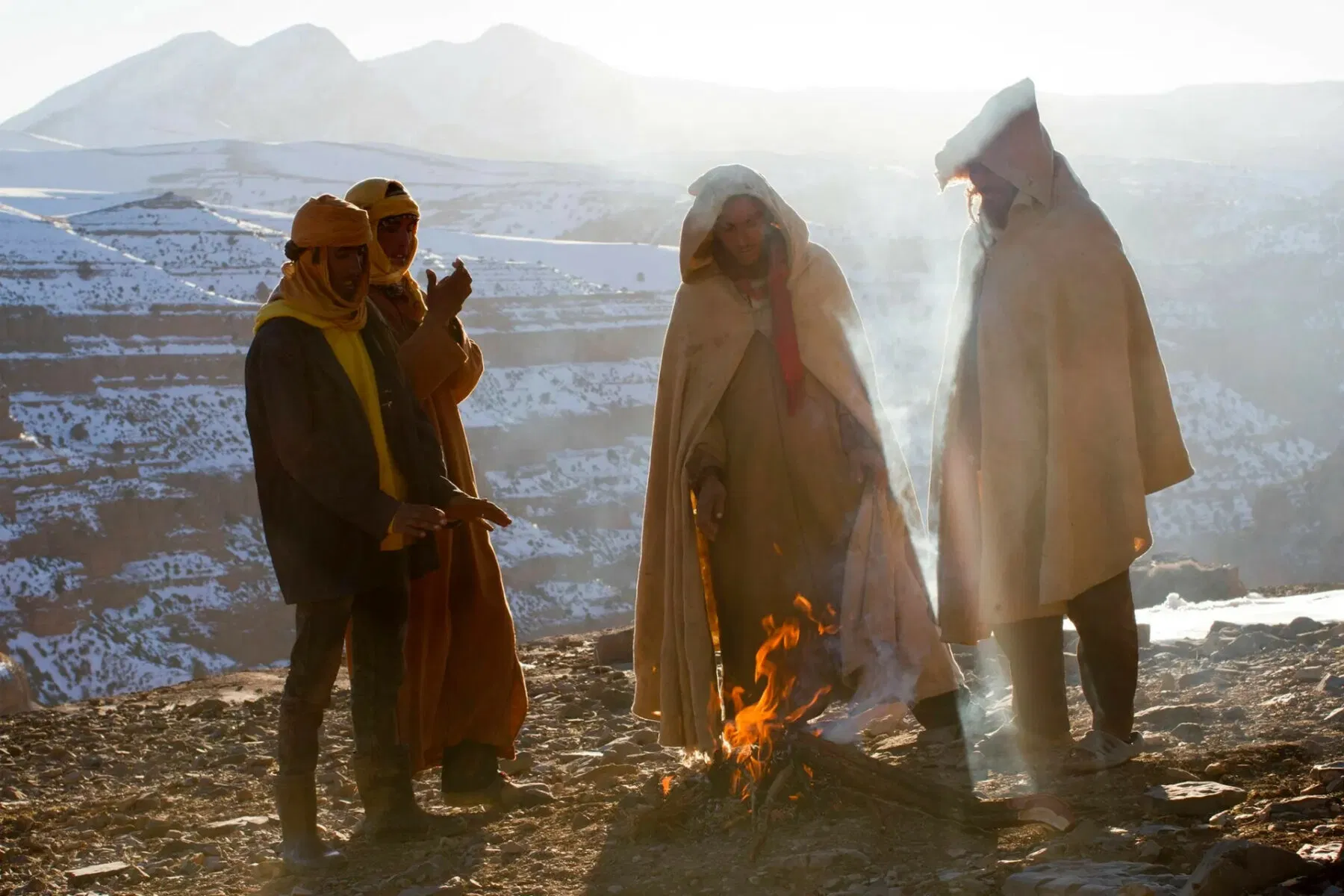 In 2015, Youssef Boudlal made the long journey from his home in Casablanca to a Berber village in the Atlas mountains, where he captured a series of poignant images portraying the everyday lives of the inhabitants, exemplified in this image depicting a group of Berber men warming themselves on a fire. The series collectively acts as a visual archive to a rarely chronicled people, and as a testament to their enduring fortitude in the face of daily adversity.