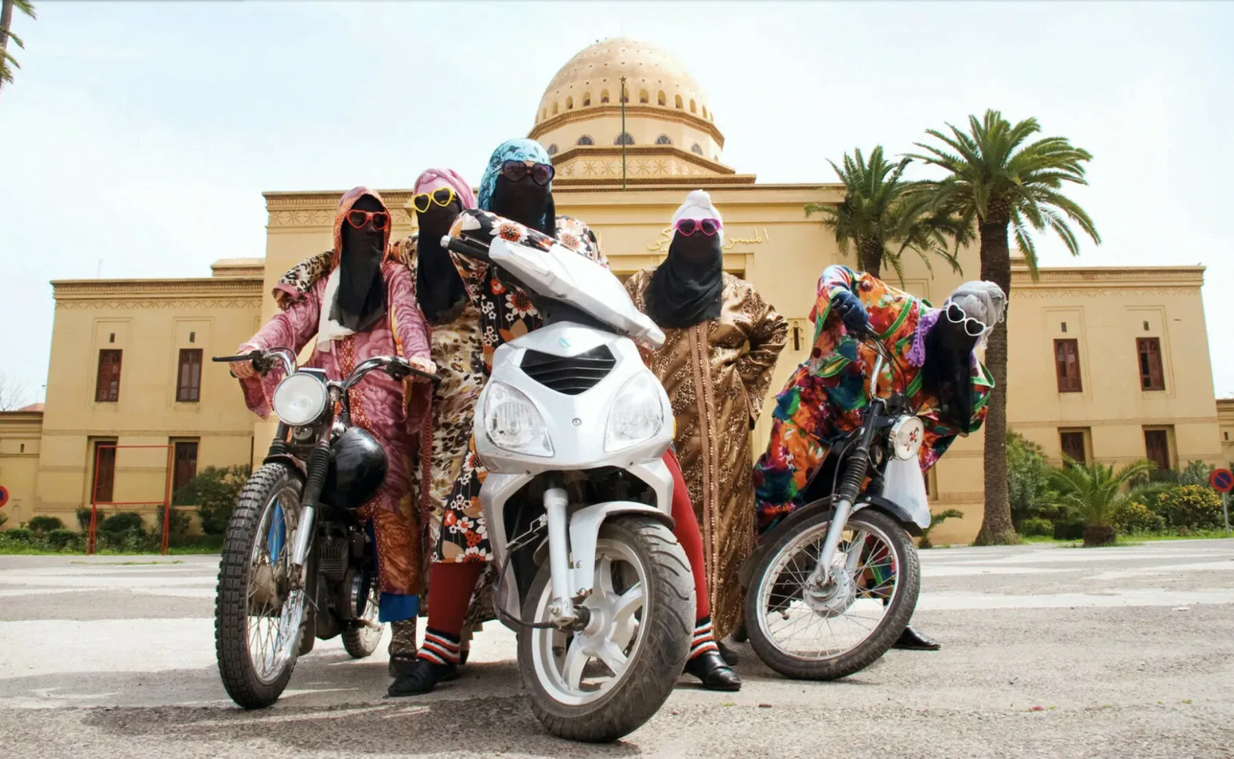 Moroccon-born, London-based multidisciplinary artist, Hassan Hajaj, has been dubbed ‘The Warhol of Marrakech’, due to his striking, graphic images, imbued with cultural references and symbolism. Best known for his colorful photographic portraits of young Moroccans whom he dresses in a contrasting blend of traditional Muslim, and counterfeit, luxury, brand-name garments, his series, Kesh Angels, depicts female motorcycle riders from Marrakech, and embodies the bold, subversive style for which he is renowned.