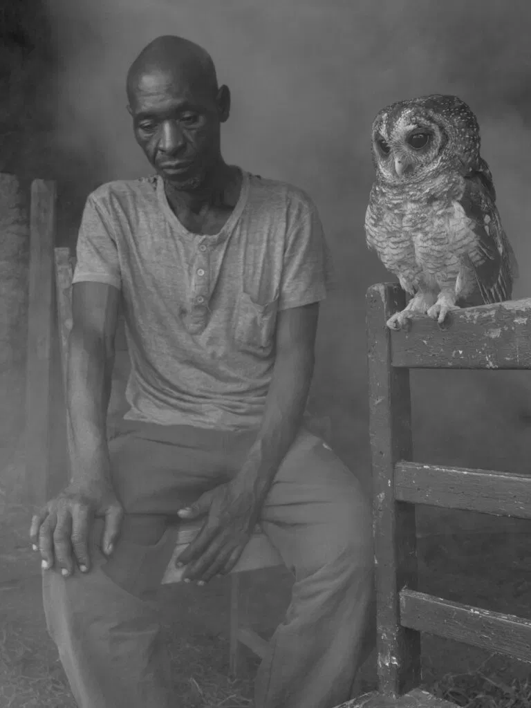 More recently, Brandt has been working on a three-part series entitled The Day May Break, the third part of which is still ongoing. Captured in Kenya, Zimbabwe, and Bolivia, the imagery depicts victims of climate change, rendered homeless by cyclones or whose livelihoods were destroyed by years of drought, alongside animals from sanctuaries, rescued due to the destruction of their habitat or poaching of their parents. Both were captured in a single frame, made possible due to the domestication of the animals most of whom can never be released back into the wild.