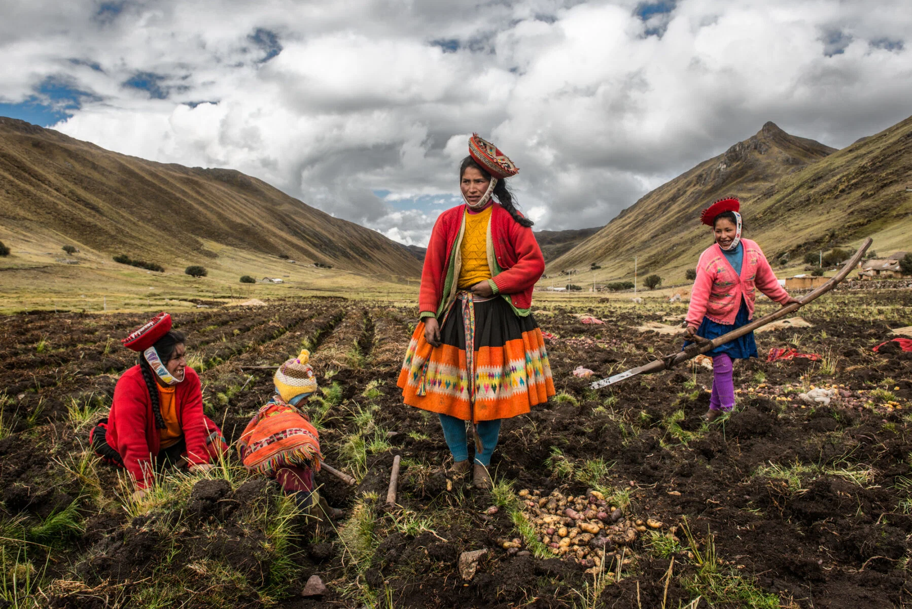 Harvest, Luis Fabini’s long-term series in the Peruvian Andes, is a meditative exploration of ancestral agricultural systems and the fragile yet enduring relationship between communities and the land they cultivate. Rooted in practices that trace back to the Incas, the project honors agro-biodiversity and the cyclical rhythms that continue to shape Andean life. In this stunning portrait, Fabini photographs members of this remote Andean community frontally against the vast highland terrain they call home, lending them a quiet monumentality. The freshly harvested potatoes gathered at their feet become both sustenance and symbol, the tangible result of knowledge passed down through generations. Reminiscent of Social Realist painting, the soft, diffused light gives the scene a painterly texture, echoing the North Light of Dutch masters to draw out the grit of the soil and the intricate weave of traditional textiles, elevating labor into something enduring and dignified.