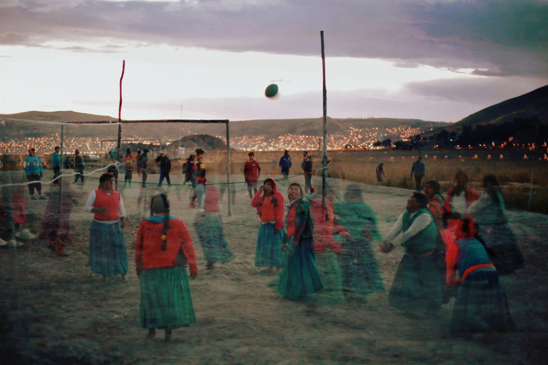 Rather than stopping time with a single, crisp moment, the photographer embraces motion and layering to convey movement and togetherness, capturing the ethereal blur of figures in play becomes a visual echo of the interdependence and joy found within these tight-knit communities. Thus, the photograph becomes less a documentation of a game and more an expression of community life itself, resilient, active, and inseparable from the vast natural world that shapes it.