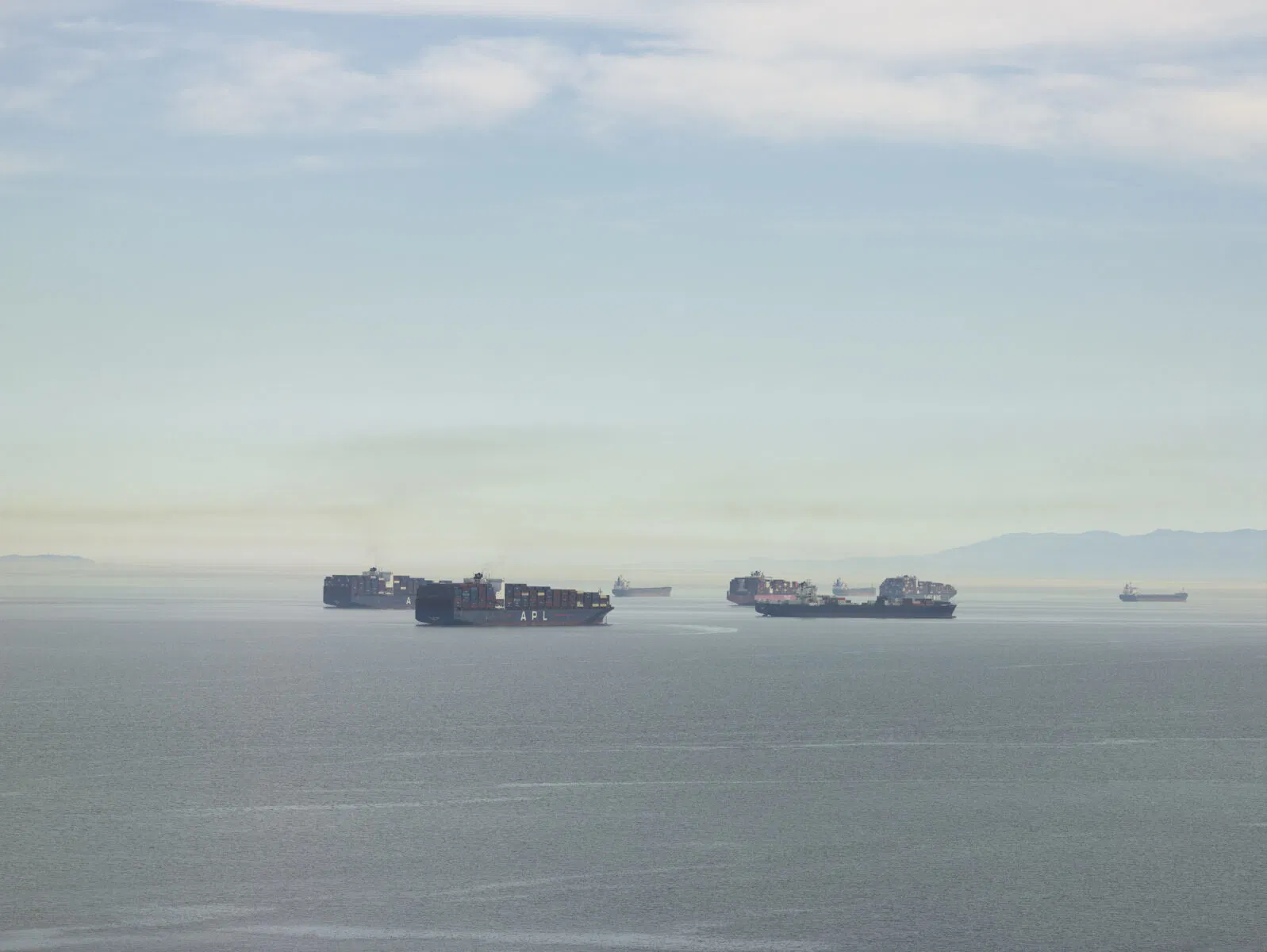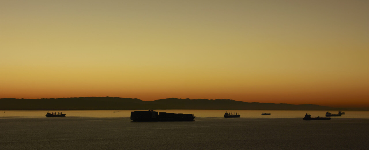 The book comprises photographs of cargo ships in the San Francisco Bay, beginning in 2021, at a moment when the global shipping industry was reeling from the fallout of the COVID-19 pandemic. With supply chains paralyzed and ports clogged, these vessels became powerful symbols of both global interdependence and fragility. Yet Misrach approaches them not as blunt metaphors but as subjects in a vast maritime theatre, diminutive yet stubborn presences adrift in atmospheres of sea, sky, and shifting light.