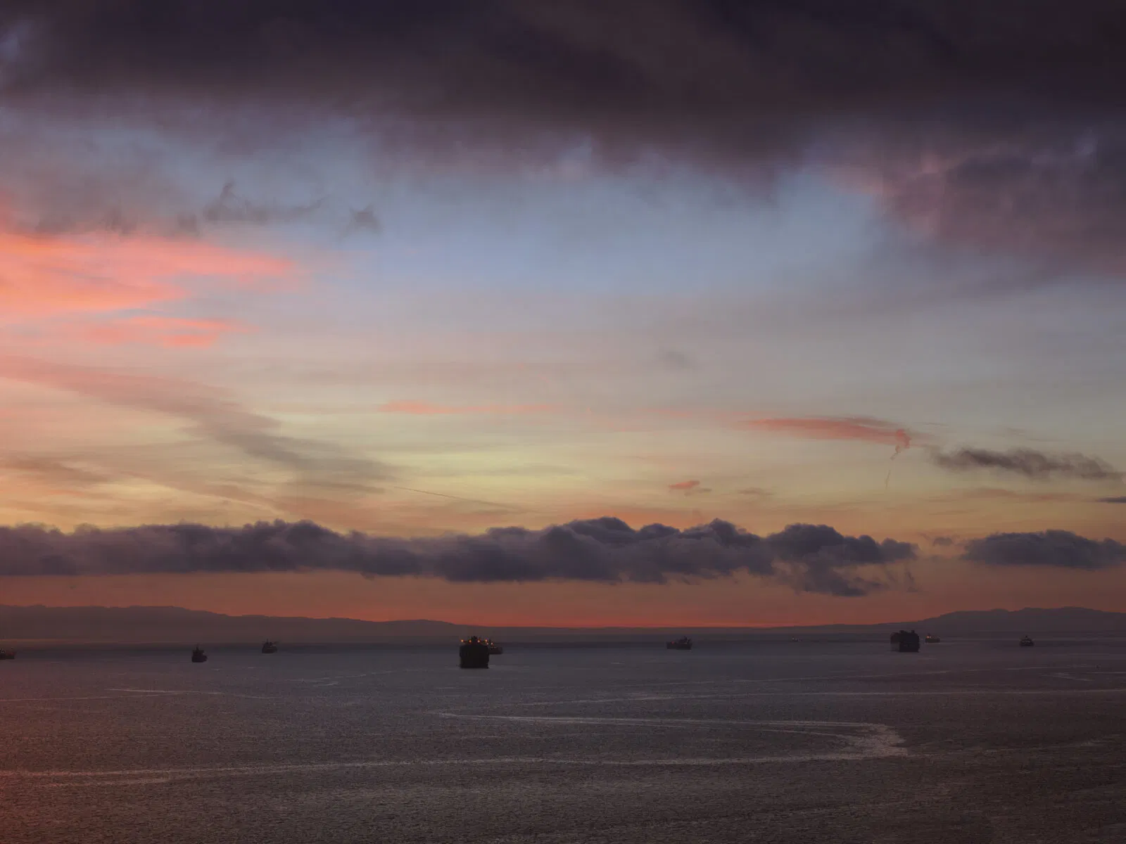 In this sense, Cargo feels both a continuation and a return. Like Golden Gate, it is rooted in place, in the mutable theatre of the Bay’s weather and light. Yet where the earlier series captured a fixed monument transformed by atmosphere, here Misrach’s subjects are transitory. industrial giants passing through, briefly monumental before fading into the vastness of the open ocean.