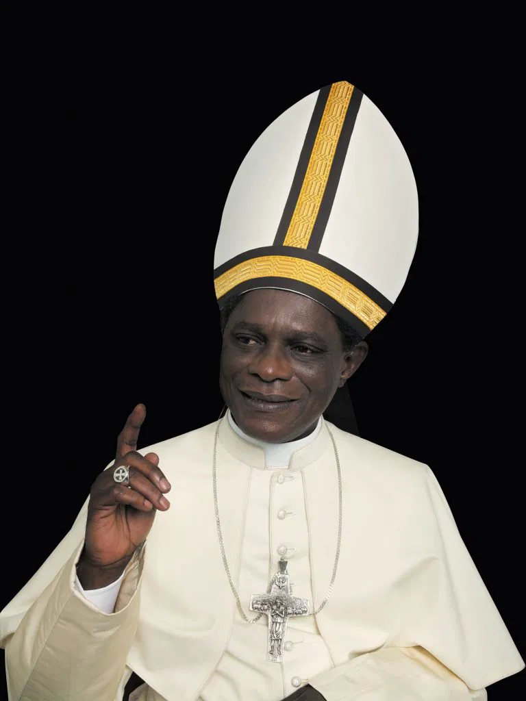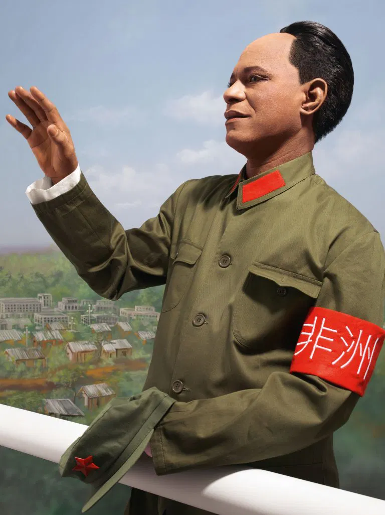 Widely acclaimed, the series marked a return toward a more unequivocally protestive tone, retained in his 2013 series, Allonzenfans, a testament to the seldom acknowledged West African soldiers who fought for the armies of France and their allied colonial powers in both World Wars. Emperor of Africa, also 2013 in which he assumes the guise of Chairman Mao, recreating iconic propagandist portraits of the former Chinese leader as a means of interrogating the modern relationship between China and the African continent, and again in 2017 with Black Pope, in which he challenges the ubiquity of whiteness within the Catholic iconography, imagining how, one day, that his vision of an African pope could become a reality.