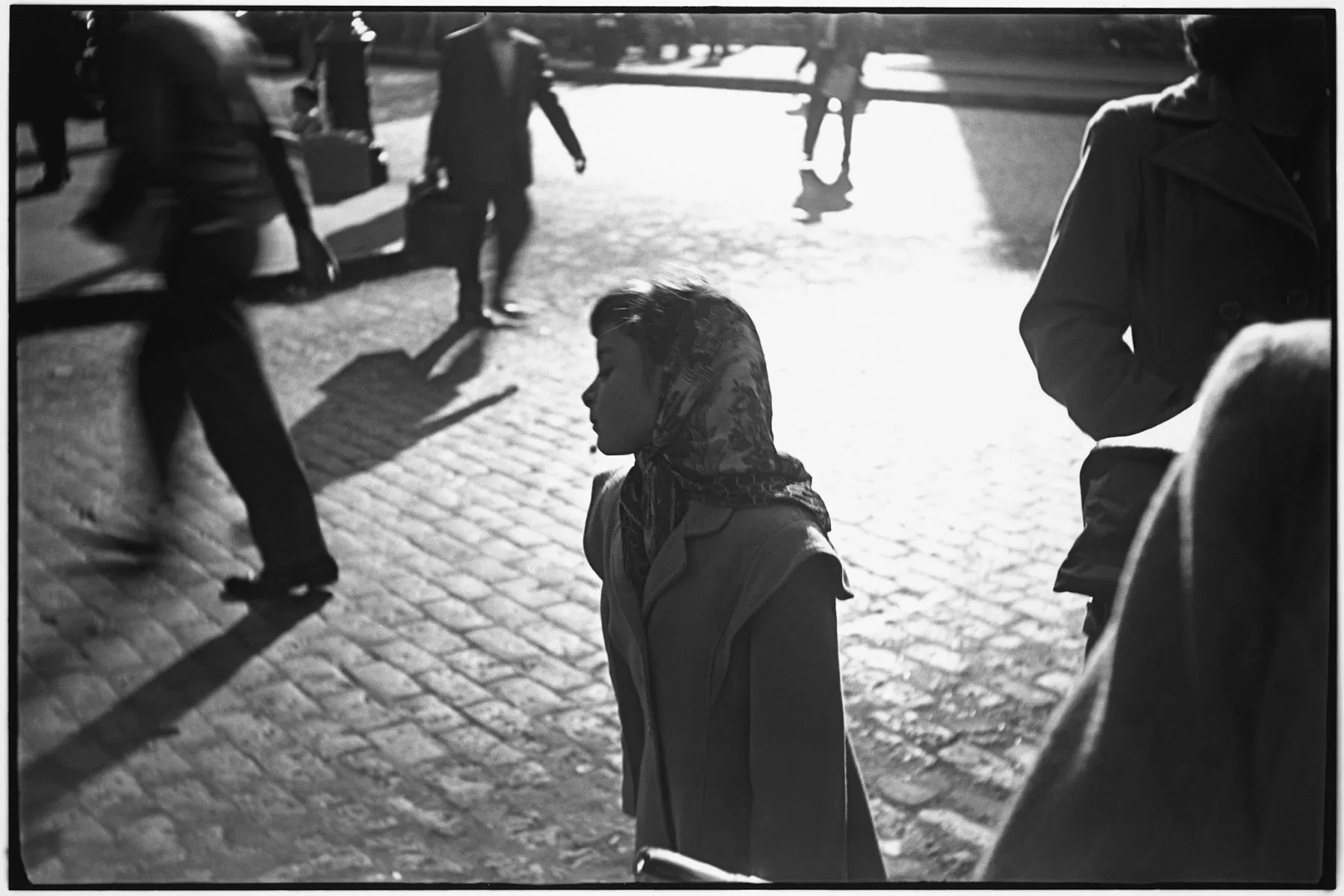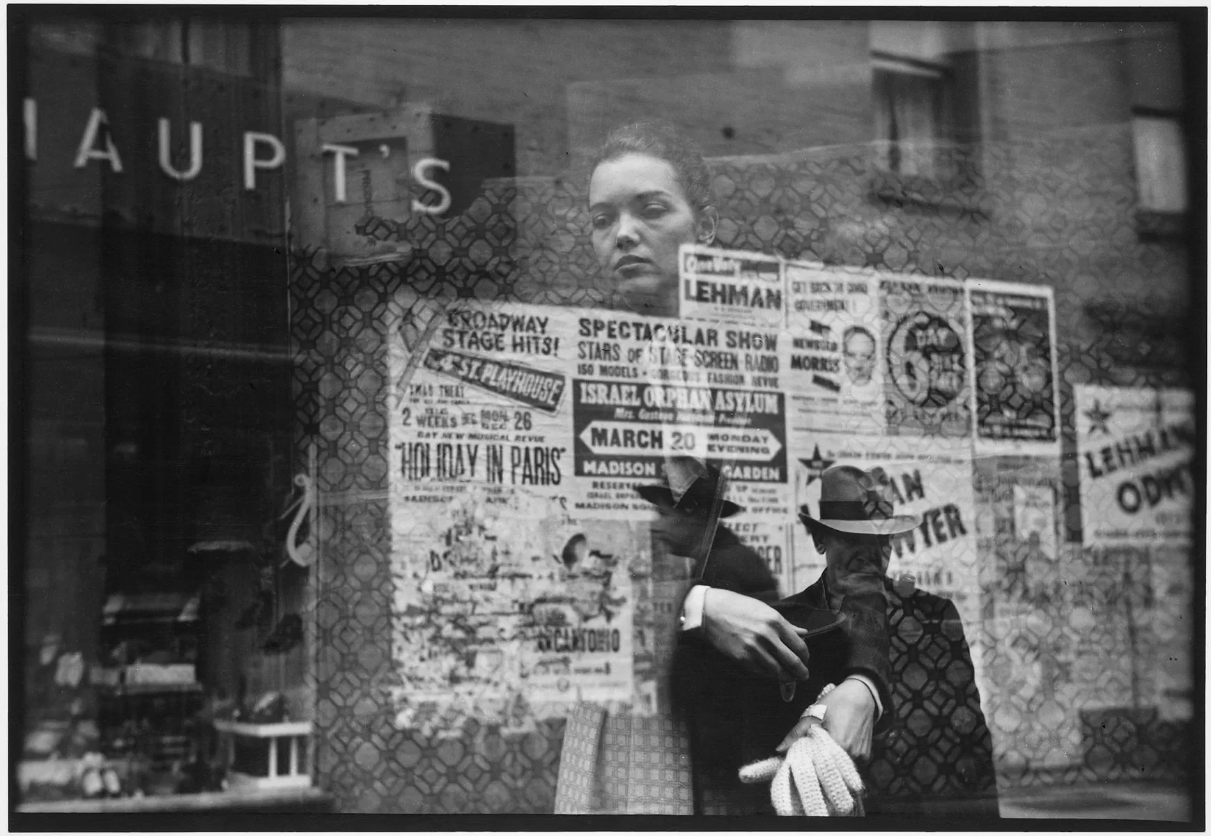 It is for these images that he is best known, and where his interest in painting and the abstract is perhaps most evident; he frequently shot through windows, their surfaces filtered by rain, steam, or faint reflections. He utilized shadows, unusual angles, and frequently, a telephoto lens, to achieve compression, a contrast to the wide-angle style usually preferred by street photographers.