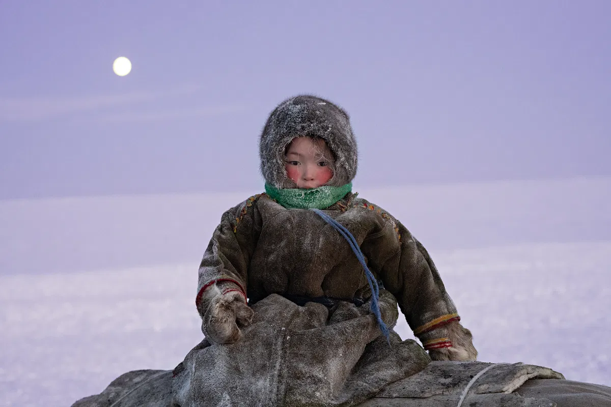 He spent ten days with the group, witnessing first-hand, their unique way of life: the deep interdependent bond they share with the land and their herd, underpinned by animistic, shamanistic beliefs. His images depict the Nenets on migration day, the various generations dismantling their temporary homes under the perpetual glow of the arctic sun as they prepare for another arduous journey across the wintry terrain.