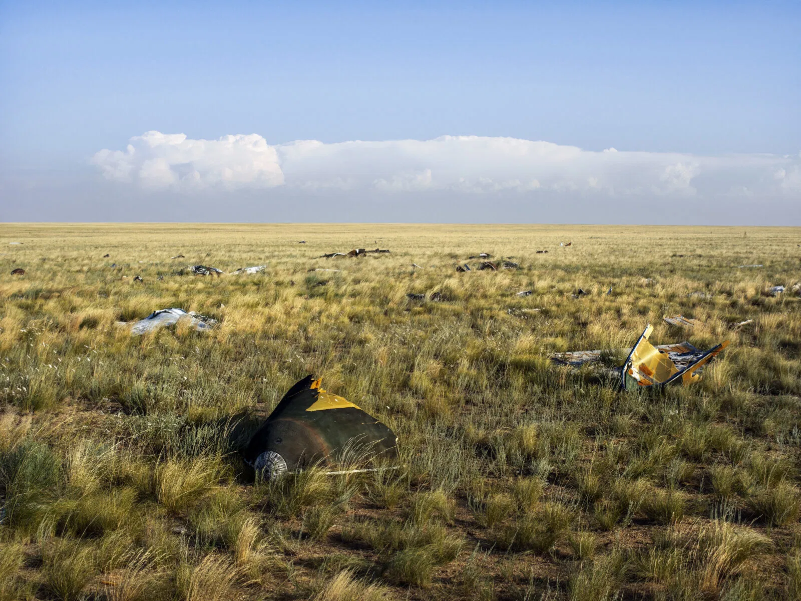 Every three months, a space rocket carrying three astronauts and cosmonauts, bound for the International Space Station, launches from Baikonur Cosmodrome, a Russian-operated spaceport in the remote Ulytau Region of central Kazakhstan. Around the same time, in the grasslands a little to the northeast, another returns to Earth.
