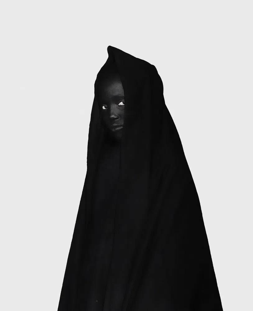 The term “Montsho,” meaning “Black,” is commonly used in South Africa to mock individuals with darker skin tones. In this image, South African photographer Bongani Tshabalala delves into the emotional impact of childhood teasing, which often leads to depression among young black boys and girls. For Tshabalala, this image embodies both destruction and preservation, reflecting the choices individuals make in embracing themselves after experiencing trauma. This stunning portrait captures the inherent beauty of the sitter, accentuated by the high contrast of dark clothing against a white backdrop.