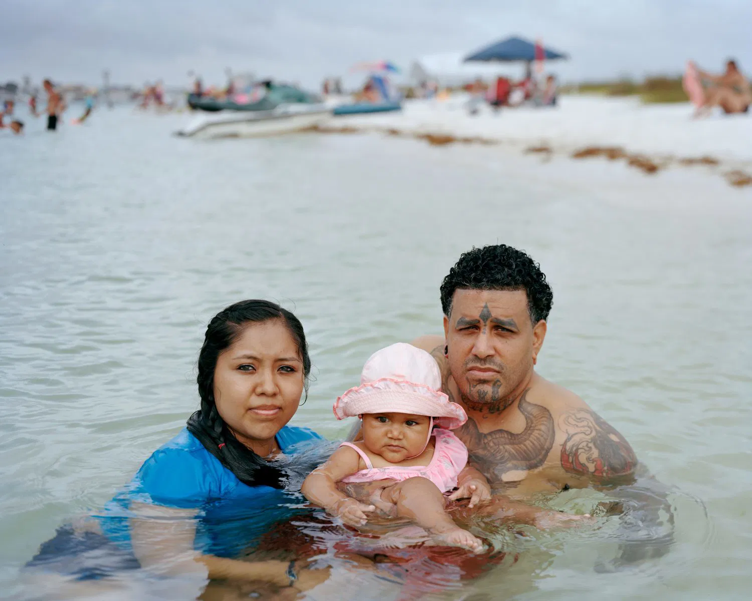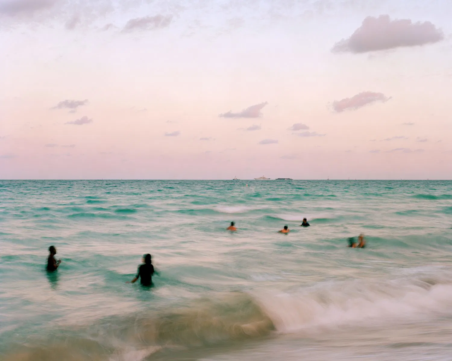 BT: A billboard depicting a surfer gliding along a breaking wave becomes a premonition; a family, chest-deep in the Gulf of Mexico on a holiday weekend, becomes a portent. An idyllic postcard sent home from a bygone Florida vacation? Another piece of an expanding archive of blind folly in the face of great tragedy.
