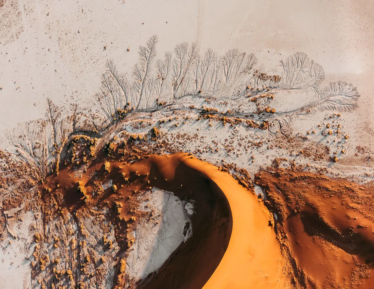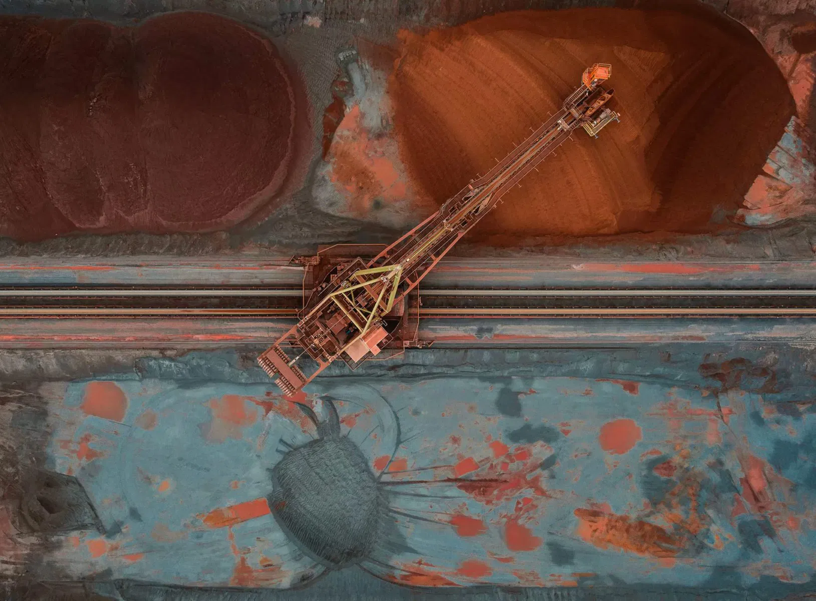 Gradually, your eyes adjust, or perhaps you read the caption, and it dawns on you that this is not some esoteric piece of conceptual art; it’s in fact, a photograph of an earthly landscape captured from above, filled with unusual shapes and colours that appear otherworldly.