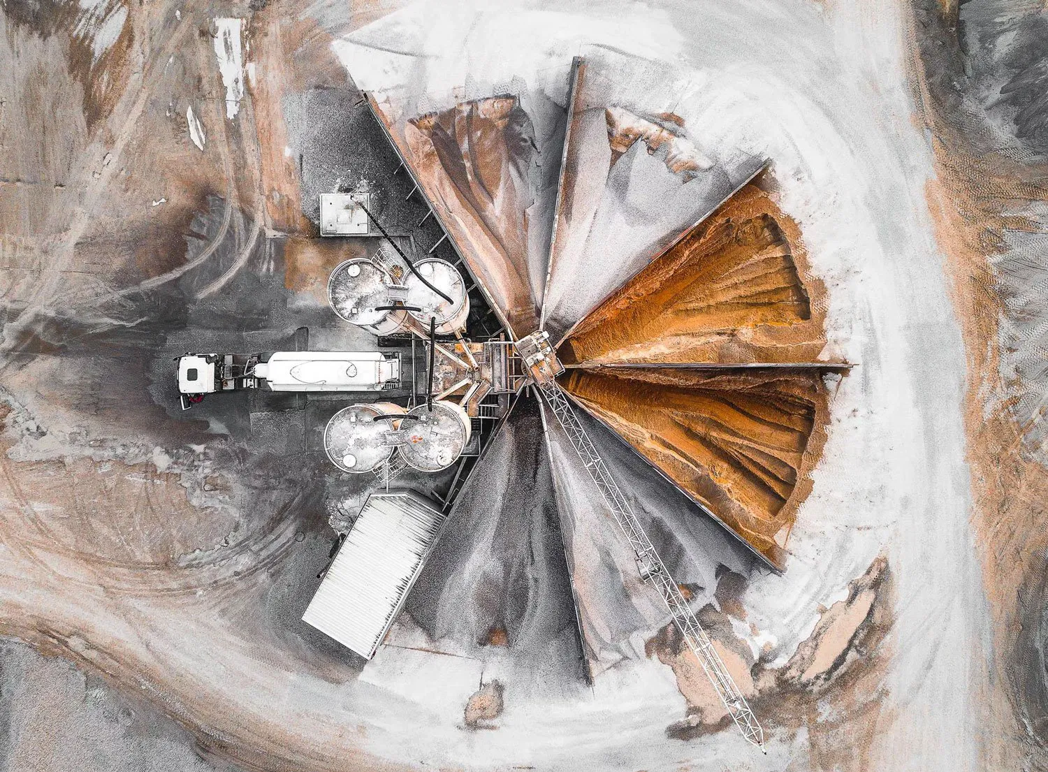 At times the comparisons are remarkable; the pastel tones of his Salt Series I, in particular, recall some of Rothko’s most well-known works, whilst his fascination with man-made geometry, a concept present in much of his work, emulates the quintessence of Mondrian’s compositions. Moreover, the 90-degree angle from which he invariably shoots serves to further enhance the painting-like quality of his images.