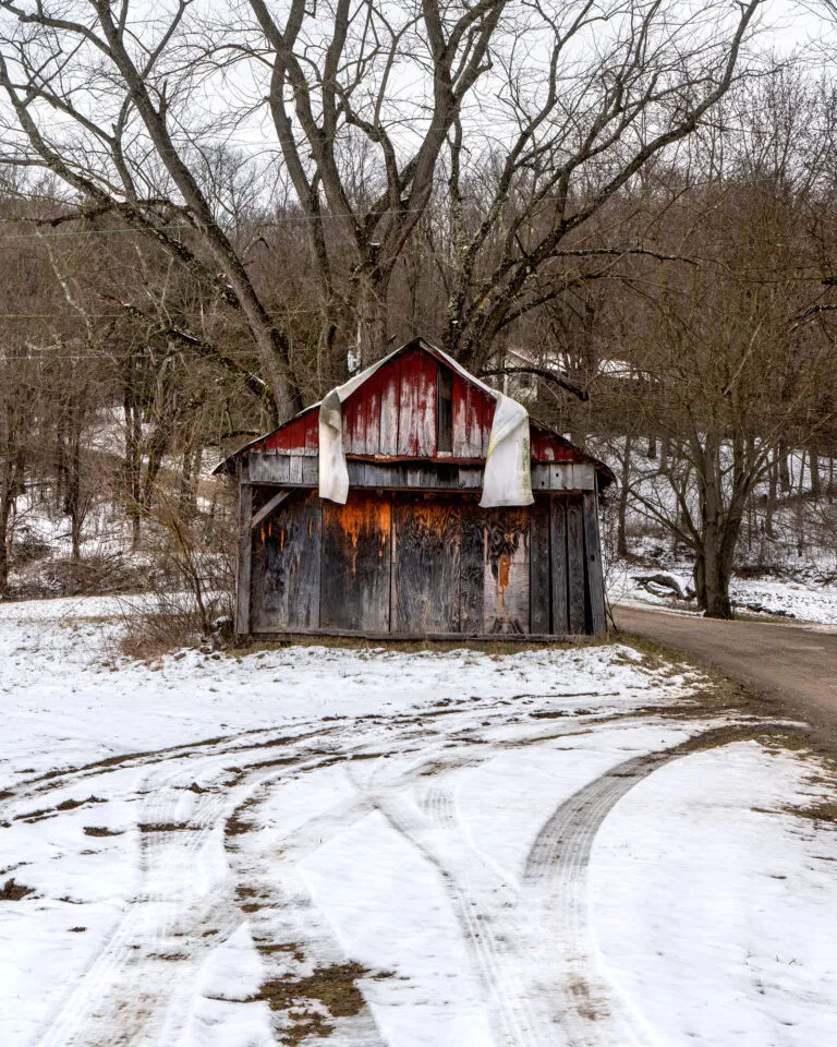 However, her latest offering represents somewhat of a departure from her usual work – which frequently focuses on human subjects – the first, wherein images, sans people, have taken such precedence. Oscillating between color and monochrome, portrayals of rural wintry scenery are often punctuated by timber houses or run-down structures, and on occasion, faunae, both living (and in one case) deceased.