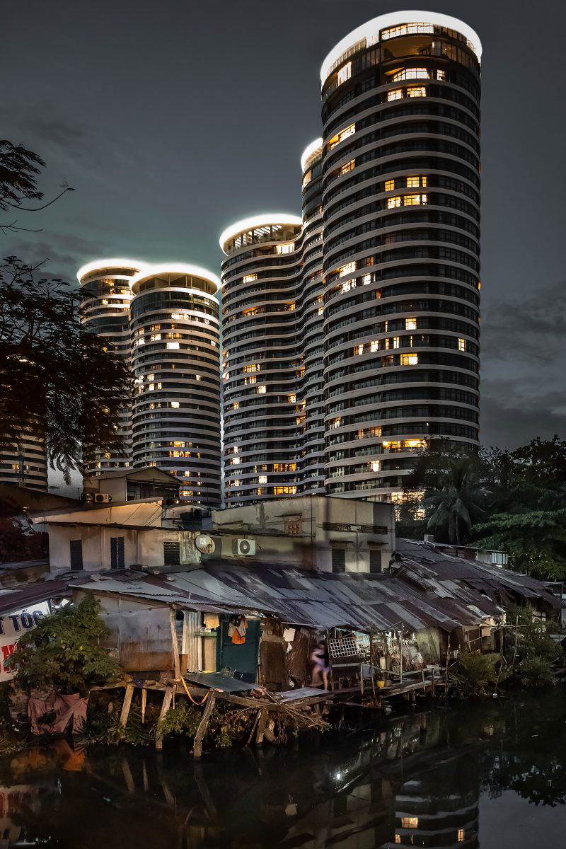 Ho Chi Minh City, the economic heart of Vietnam, is a bustling metropolis home to gleaming skyscrapers and modern infrastructure. While it boasts the highest GDP per capita in the country, it also grapples with significant inequality, with the top 20% of earners making over 10 times more than the bottom 20%. German photographer Andreas R. Kremer perfectly captures this stark contrast. His striking image depicts the polished luxury apartments catering to expats, wealthy locals, and foreign investors, casting a juxtaposing shadow over the dilapidated residences in the foreground, which often house poor migrant workers who have moved to the city from rural areas in search of better opportunities and are essential to the city’s economy and cultural fabric It is a striking scene that highlights the contrasting lives of those often living side by side, mirroring the challenges faced by many rapidly growing cities in Southeast Asia