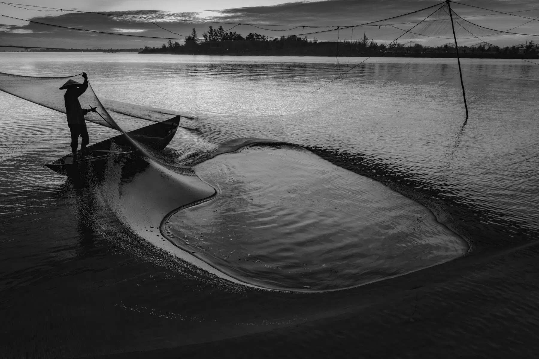 In this striking image, Korean photographer Chan Kim captures a solitary figure standing atop a small boat, casting his net with practiced precision in the soft dawn light. It is serene yet powerful scene that conveys the quiet dedication of these fishermen, guardians of traditions handed down through generations.