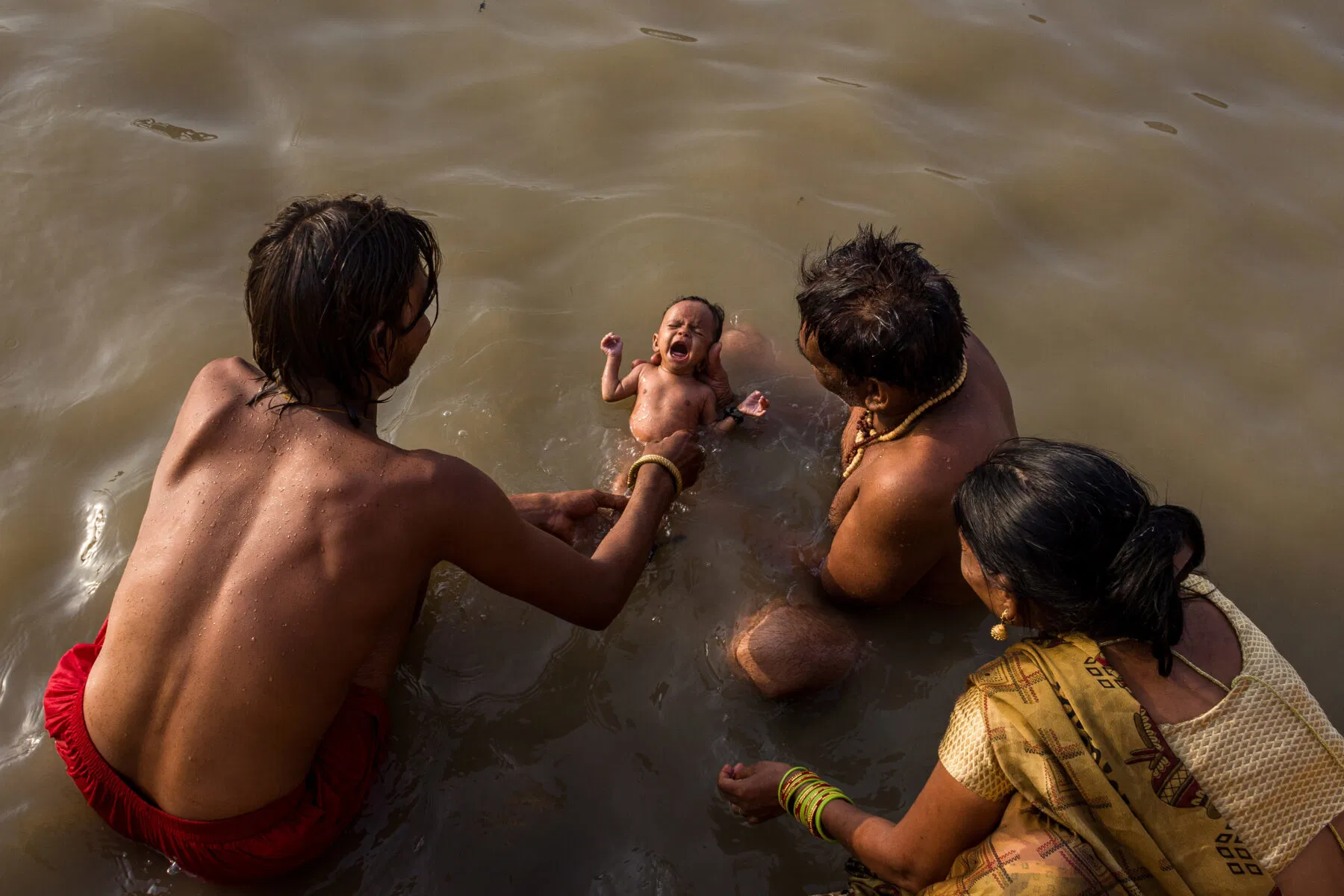 However, it is extremely polluted, and bathers run the risk of contracting deadly diseases such as Hepatitis, Cholera, and Typhoid, an irony to which the title alludes. Yet for millions, such as the family artfully captured in this image, such risks are not a deterrent, faith overrides, and thus, newborn babies are routinely immersed in the murky shallows.