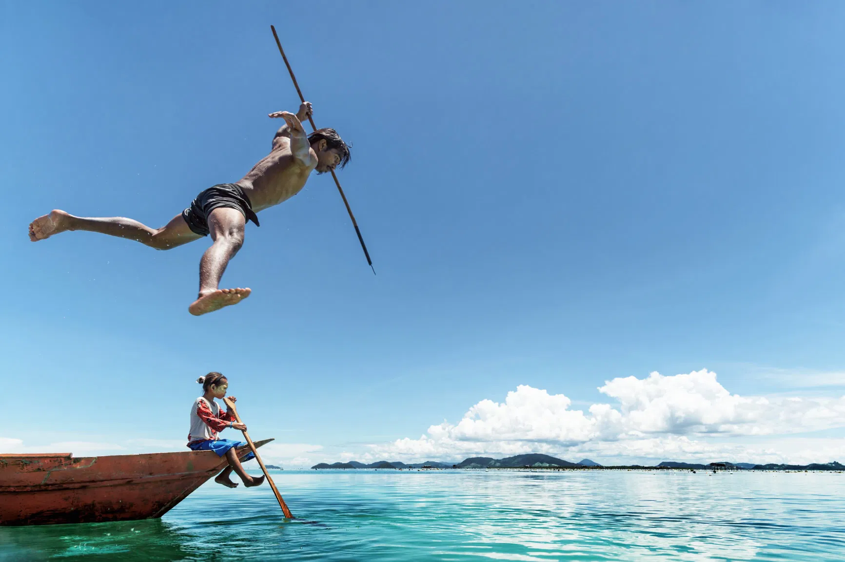 The Bajau are skilled freedivers, thanks to their enlarged spleens storing more oxygen for extended underwater dives. They fish and gather marine resources, diving as deep as 30 meters, and mainly interact with the mainland to sell goods and acquire essentials or shelter during storms. However, they face health risks like nitrogen narcosis and lack access to healthcare due to their statelessness.