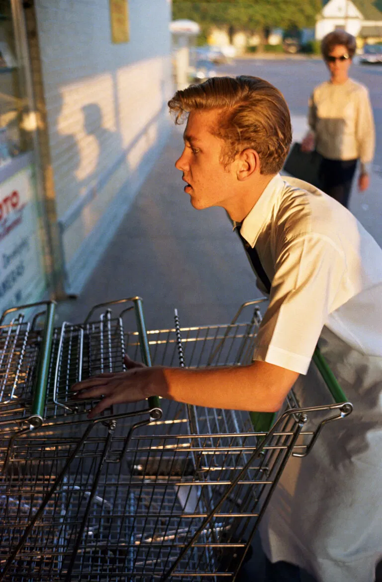 ‘Mystery of the Ordinary’ opens with these lesser-known early monochrome images from the 1950s, which played a pivotal role in shaping the discerning eye that would later underpin his better-known chromatic works. It’s intriguing to witness this evolution. The framing and composition seen in his later images are apparent, yet at times, one can’t help but feel that something is missing, especially in the portrayal of the most mundane of subjects, for example, a row of milk cartons in a fridge, which one can imagine would be so much more compelling in color.