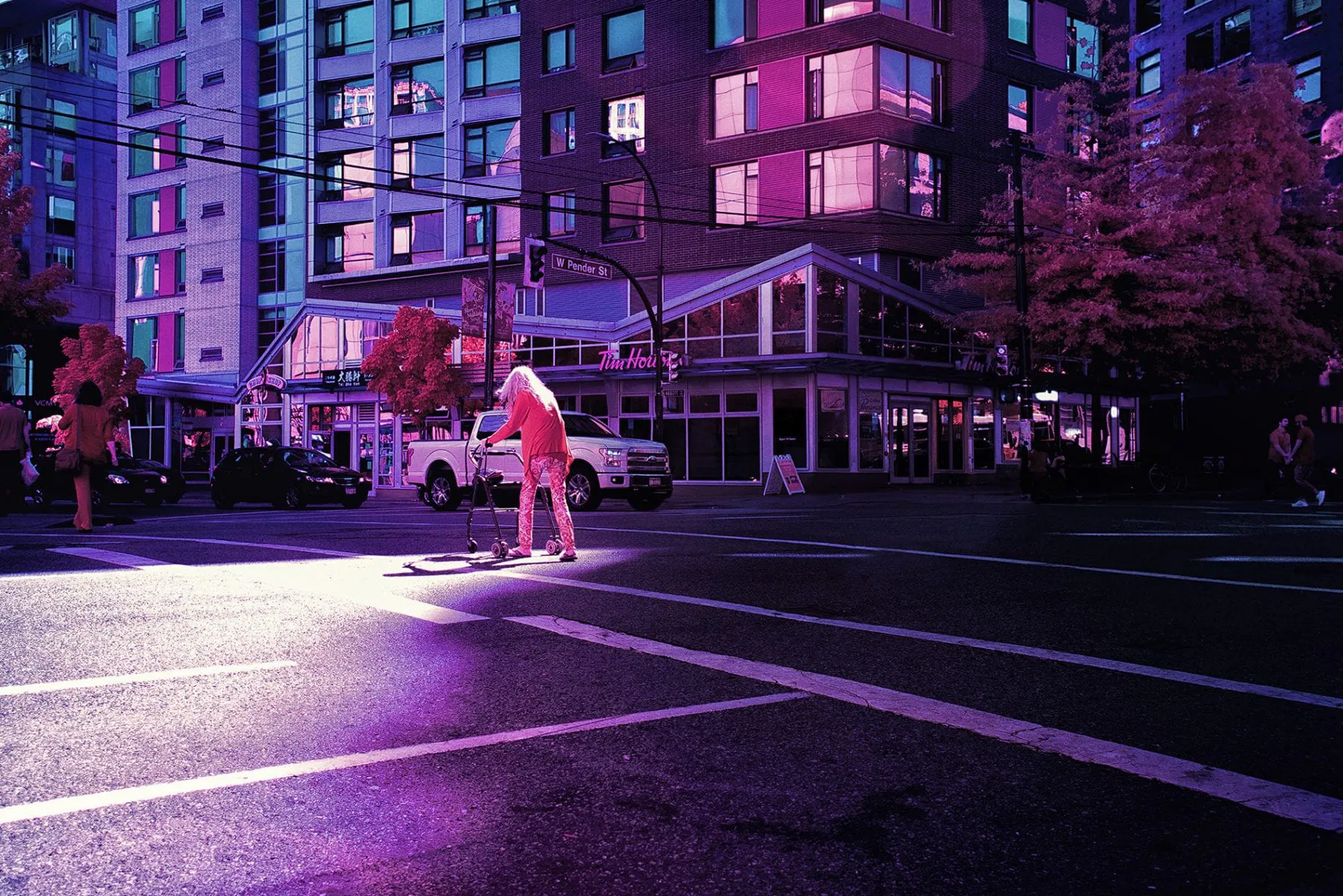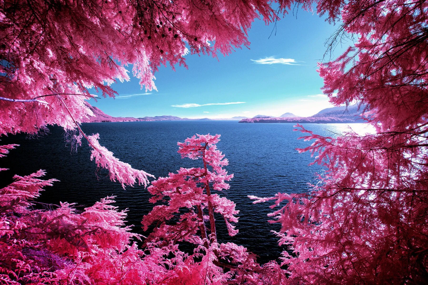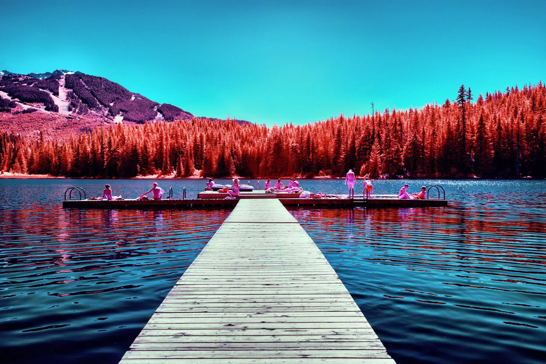 Now discontinued, Kodak Aerochrome films were first designed for use in aerial photography, with cartography and military applications. Aerochrome is sensitive to the entire visible spectrum of light in the same way as normal film, only difference is that its sensitivity is extended way beyond, into the invisible near infrared.