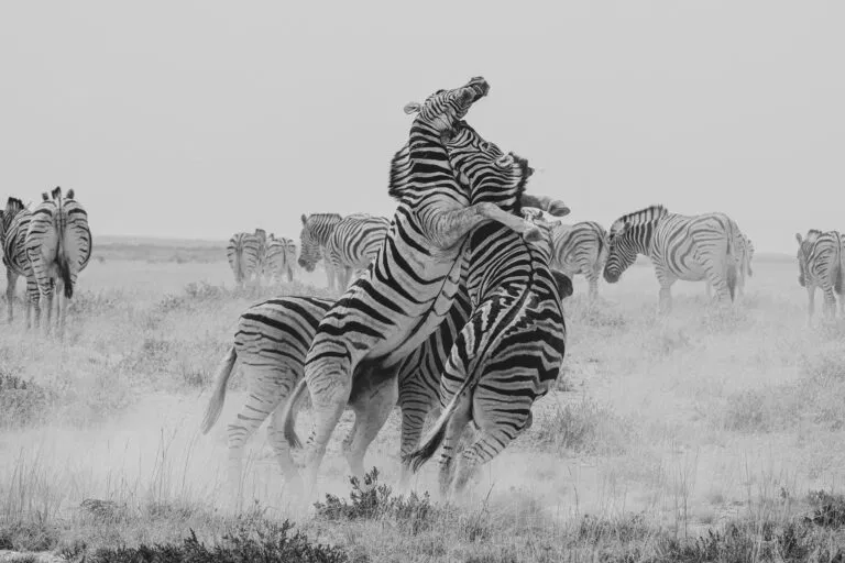 Zebras locked in a violent tussle in a Namibian national park; low clouds graze a rugged Italian landscape; two young Mentawai men photographed in the dense Indonesian jungle with which they share a deep and enduring bond: each of these deeply absorbing images displays remarkable skill and artistry, and demonstrate the profound potential of monochrome photography.