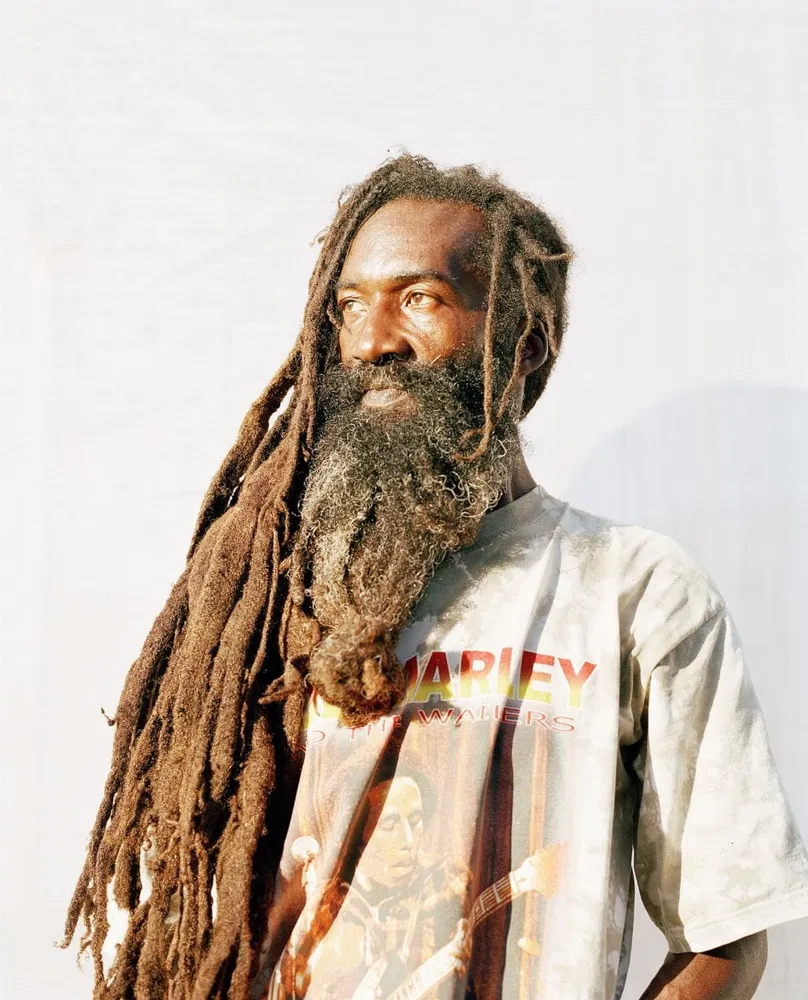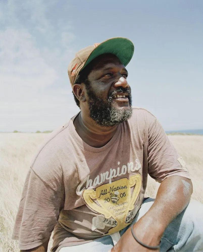 These are not idyllic springs. They’re a muddy trickle streaming through a manmade culvert, with pipes by one side indicating that the springs are going to be ‘developed’, the grass concreted over to make for a less muddy experience. So two simple pictures, but containing a wealth of detail that encapsulates the contemporary issues that are embedded in the portraits that Hyland has made. These people are not just portrayed in isolation then, but are set into the land on which they live. And they do live on the land. Though tourism is now the main industry on Nevis (and high-end tourism at that), subsistence farming is still the livelihood for many people.