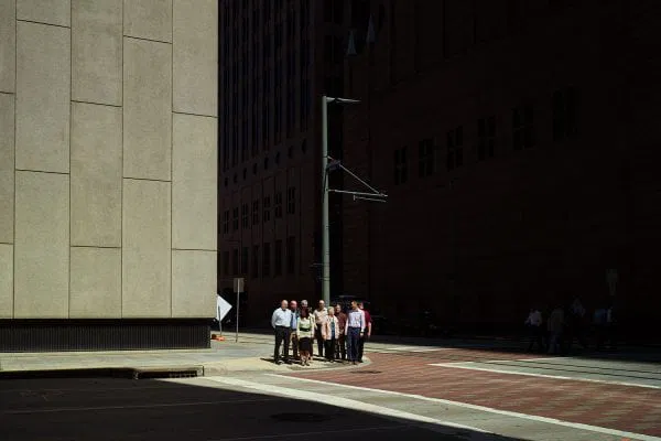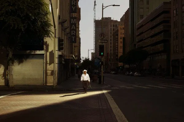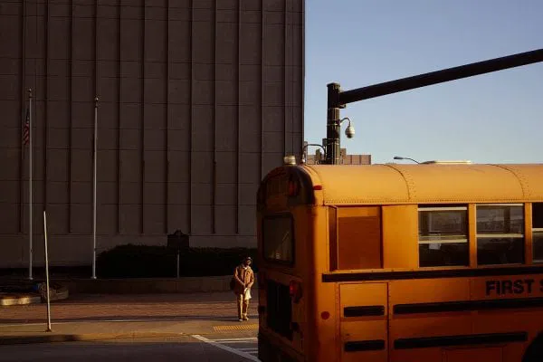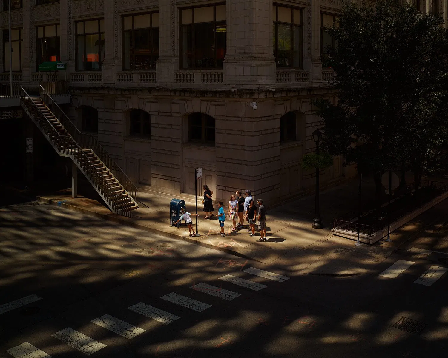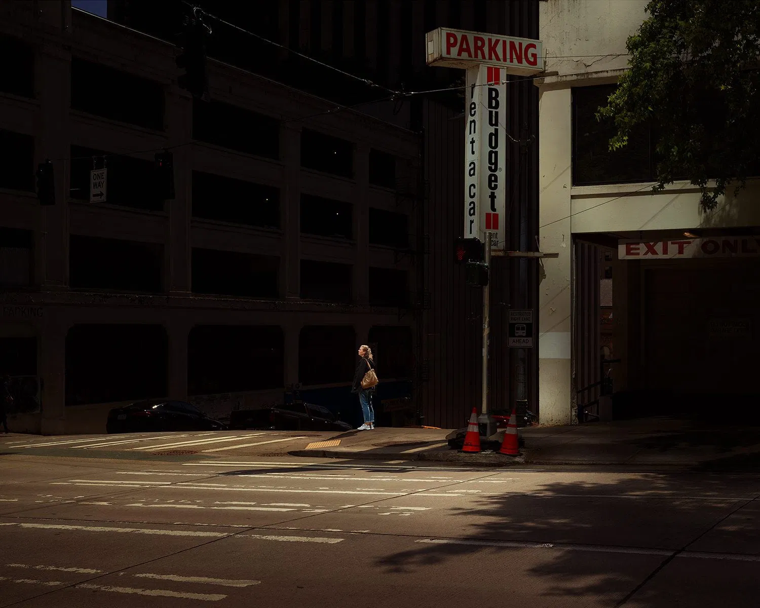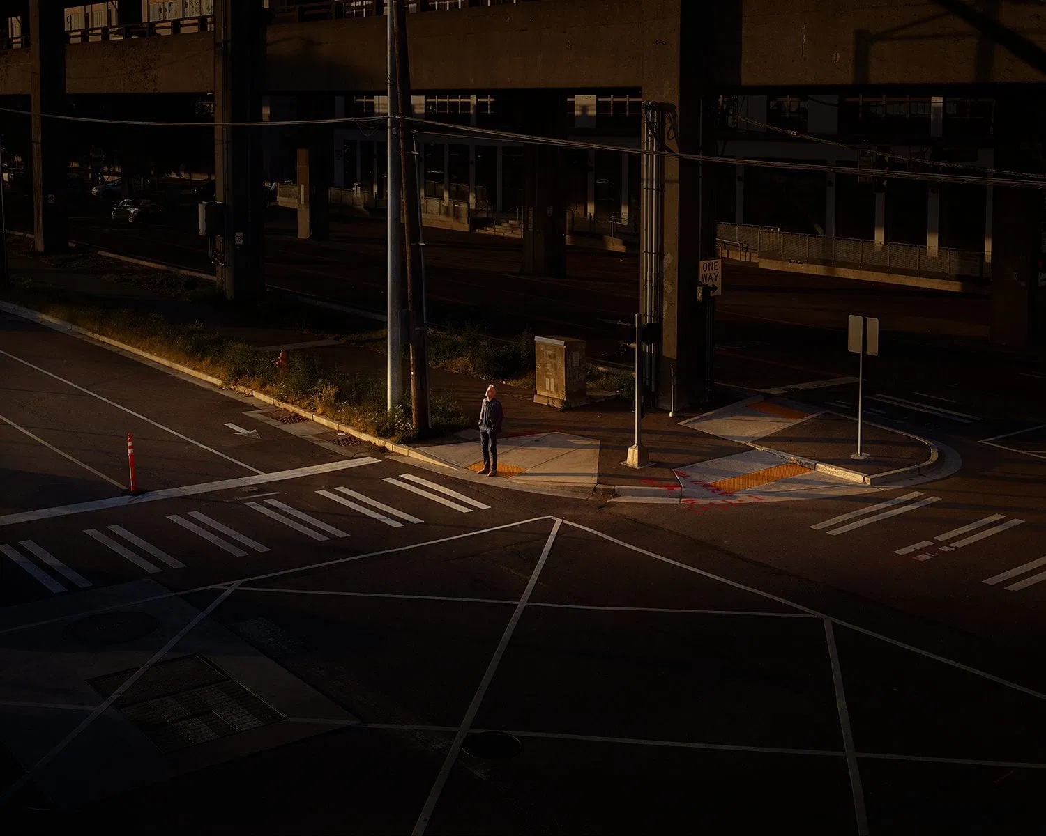 At this time of uncertainty and change in America’s history, I’m looking for a moment where individuals are dwarfed by what surrounds them, appearing lost but searching for something. They then go on their way, whichever direction that may be.” – Oli Kellett