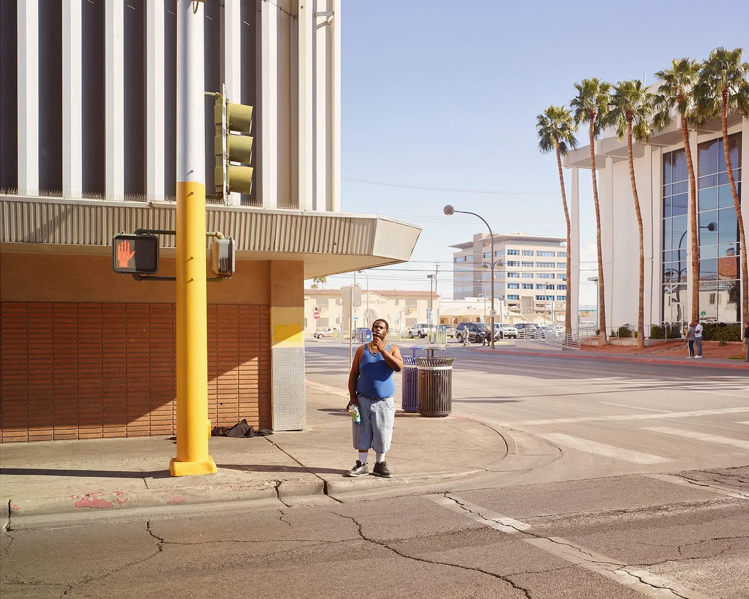 Showing subjects waiting in almost frozen situations, Kellett’s precise direction of light and shadow emphasise and question the relation existing between individuals and groups in a modern American society seemingly caught between reality and dream.