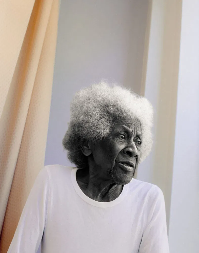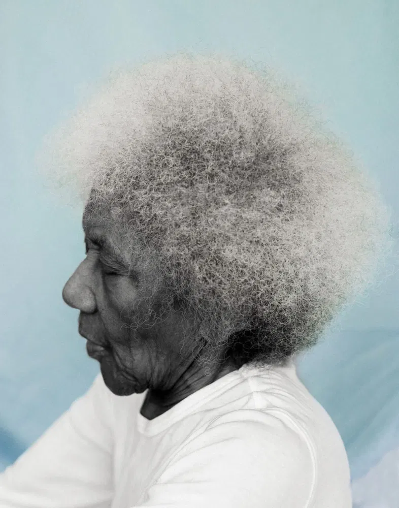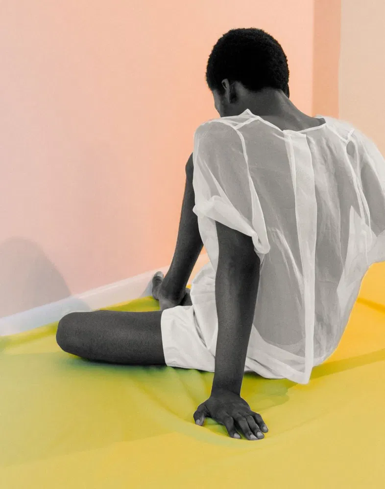“The series is inspired by the black subjects in Alex Gardner paintings and the hard-edge approach to abstract painting characterized by areas of flat colors with sharp edges. By implementing sharp changes of color in photographs, I intend to bring focus to the beauty of black skin. Vibrant, often pastel scenery surrounds each black character, while white and off-white clothing further intensifies the contrasting elements.