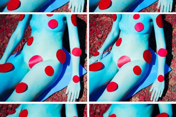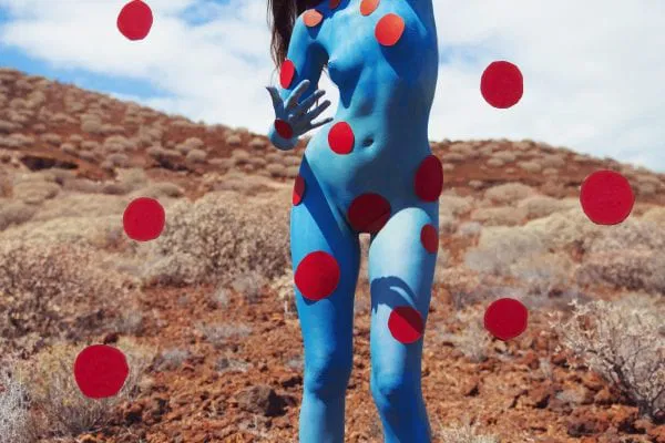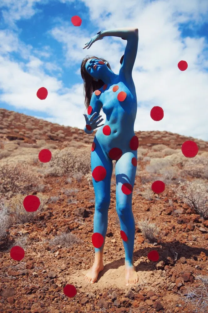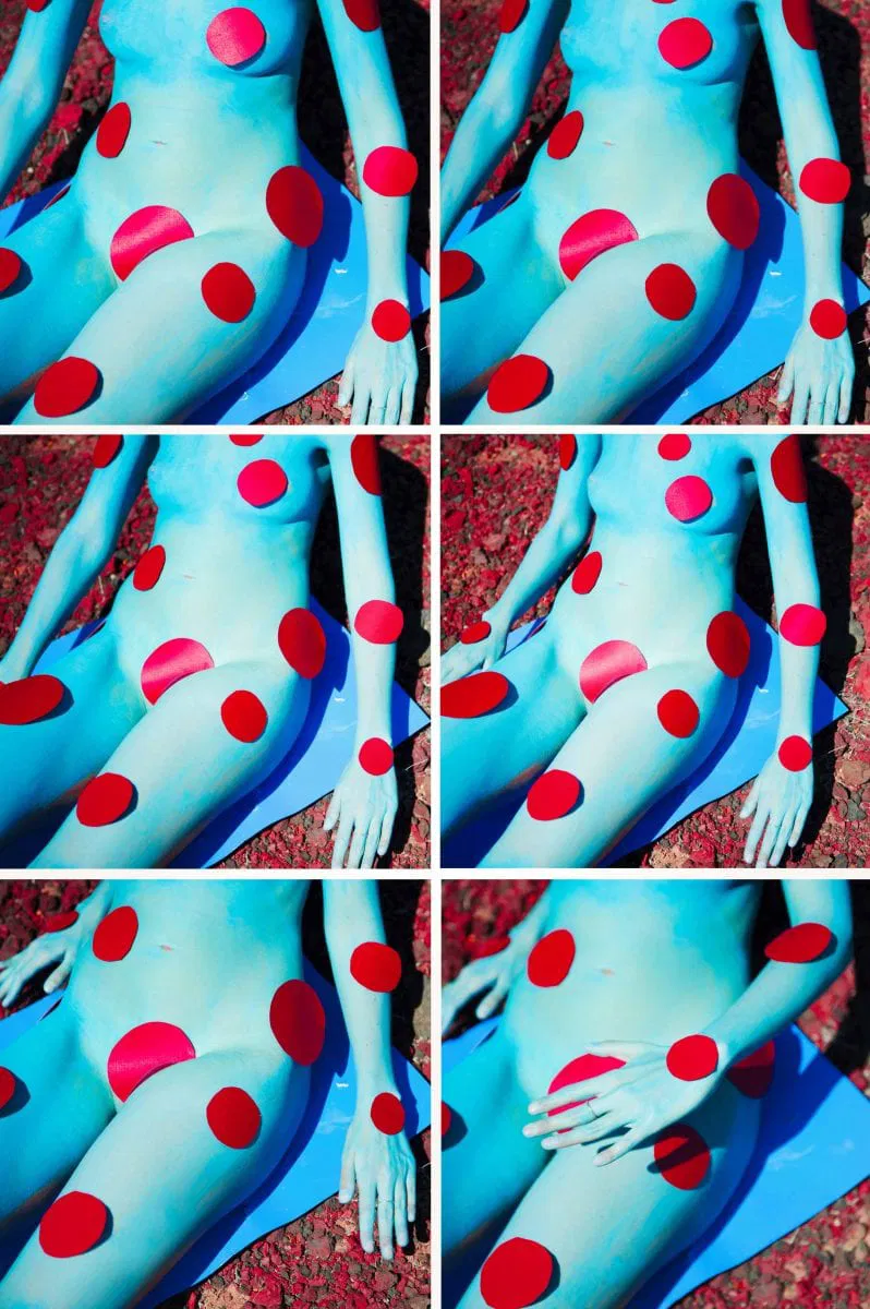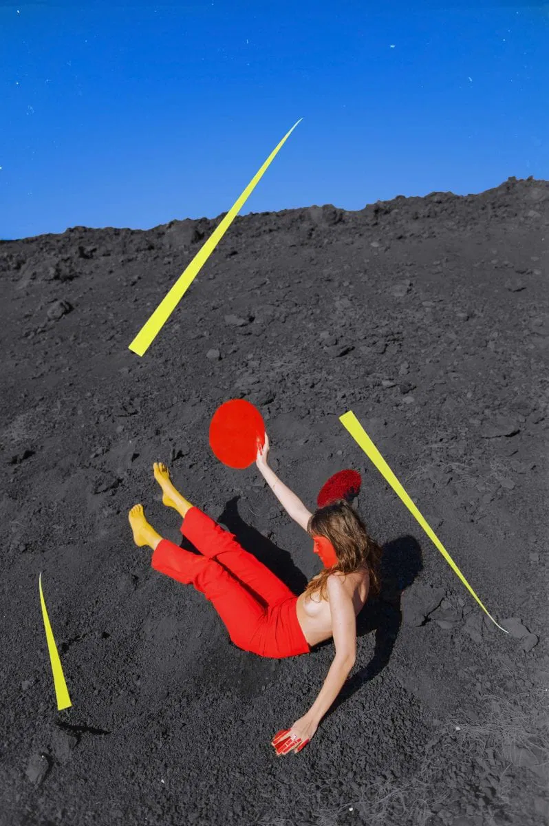 In Figures under the sun Sanja Marusic introduces us to a technicolor world with desolate landscapes and extremely saturated colors of floating bodies and shapes.