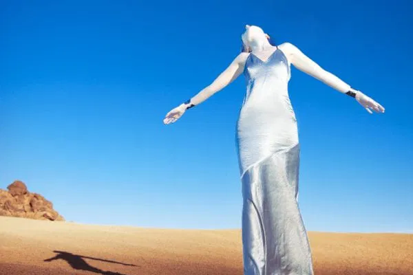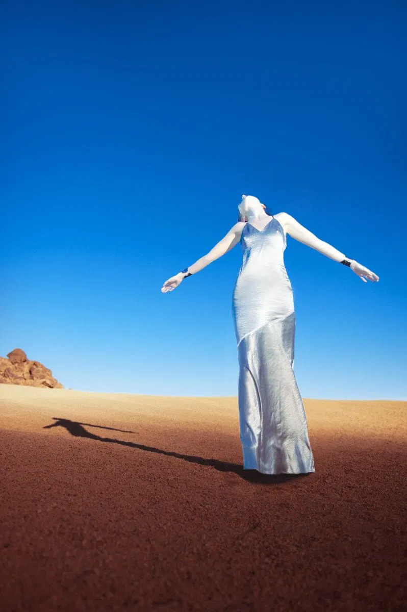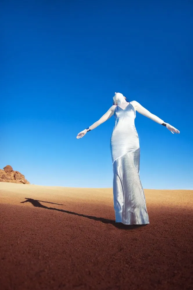 While human figures have disguised faces and appear in almost every frame, they are not the center of the images she creates: the landscape is the true protagonist of the stories.