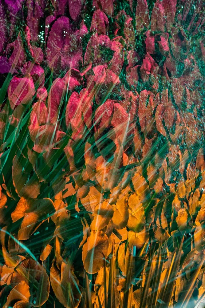 The photographs have all been created in one single exposure, without applying post composing. By manually combining diverse layers and colors during the process of photographing in a playful way, Vincent draws a parallel to the co-existence of many different realities everyone is experiencing.