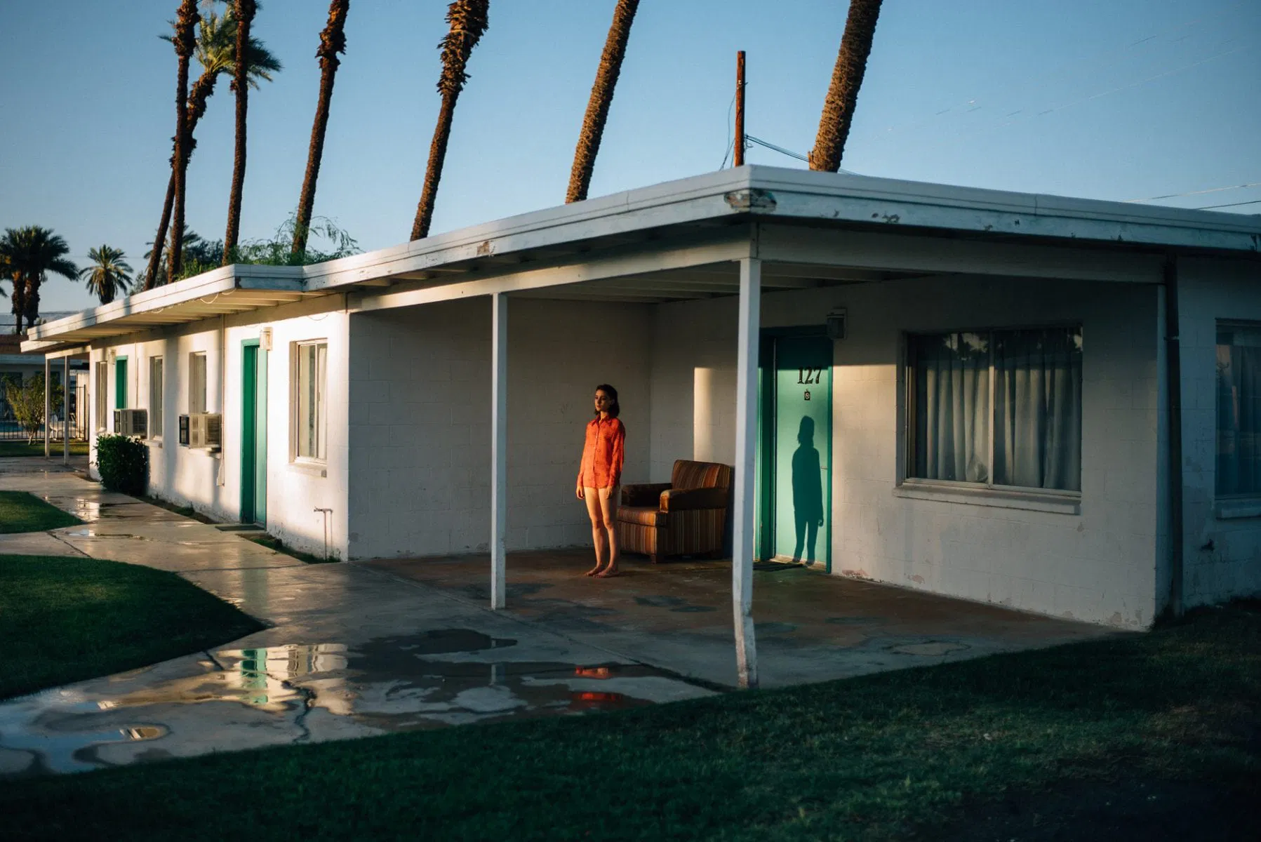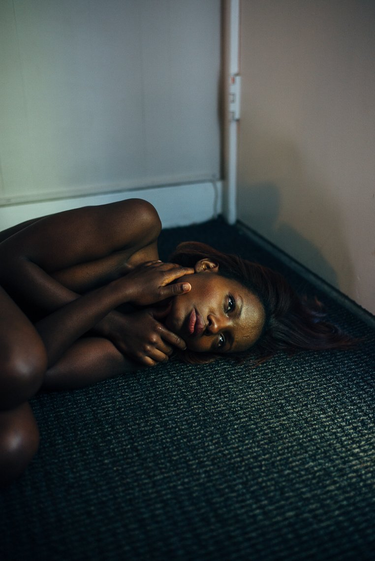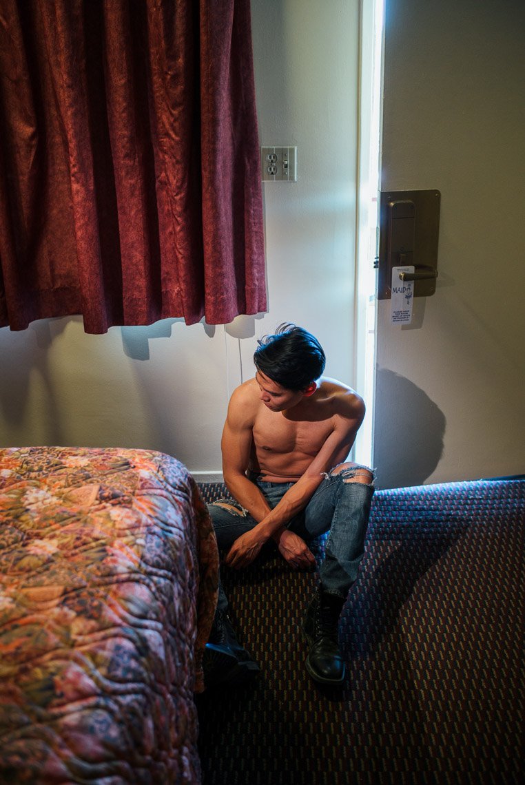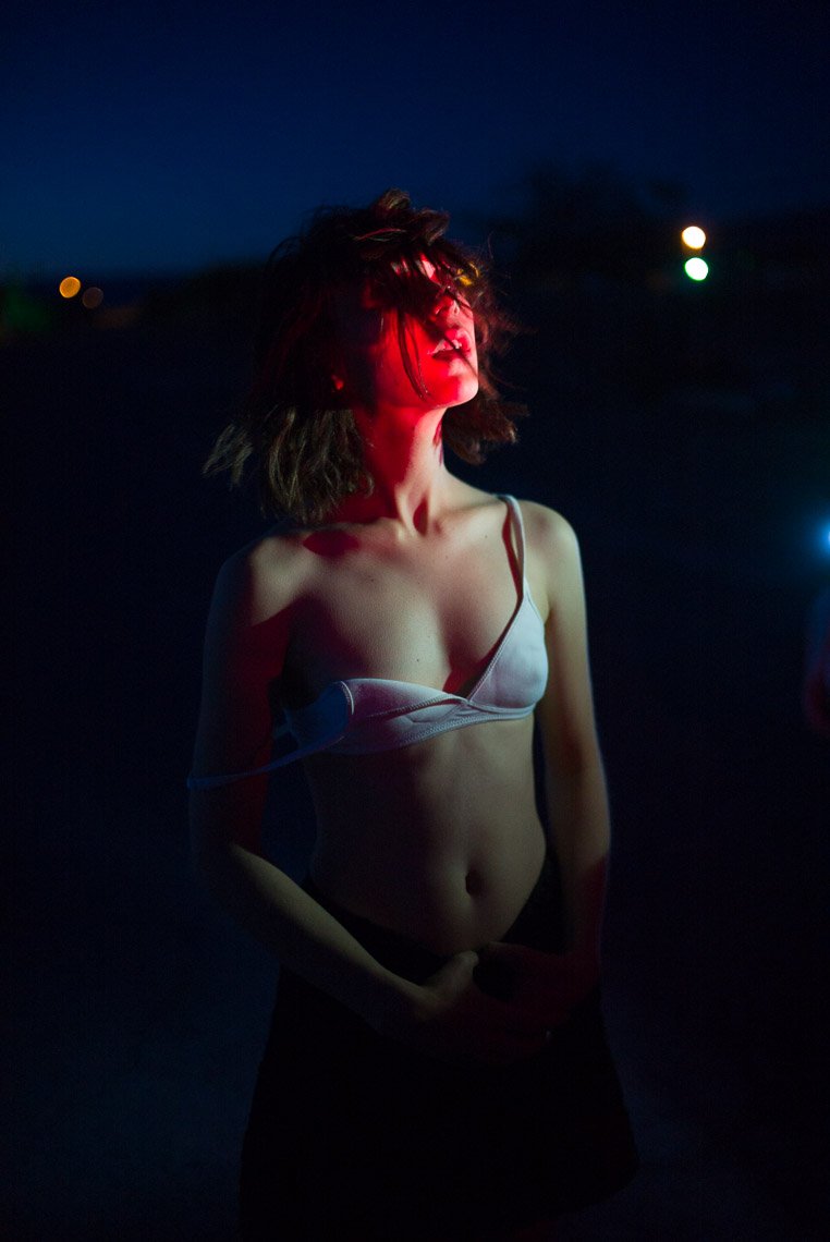 The combination represents and merges two distinct image-making processes. The landscapes were made by traveling—day and night—through thousands of miles of seemingly unbound spaces in California and Nevada. In contrast, the portraits were shot in short (one to two hour) sessions in small and confined spaces; the only variables being the room, the model and myself.